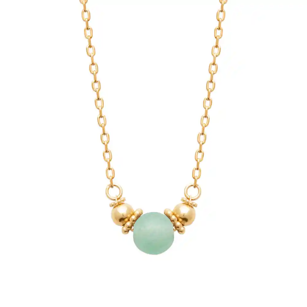 Le collier “Harmonie” Ć©voque une simplicitĆ© sophistiquĆ©e avec son design Ć©purĆ© où une pierre d’aventurine est flanquĆ©e de deux perles dorĆ©es. La chaĆ®ne en plaquĆ© or se pare de maillons dĆ©licats qui offrent un Ć©clat subtil, tandis que la pierre d’aventurine ajoute une touche de couleur douce et apaisante. MatiĆØre et finesse : Le plaquĆ© or apporte une chaleur lumineuse et un aspect luxueux durable, en harmonie avec la sĆ©rĆ©nitĆ© de l’aventurine, symbole de tranquillitĆ©.