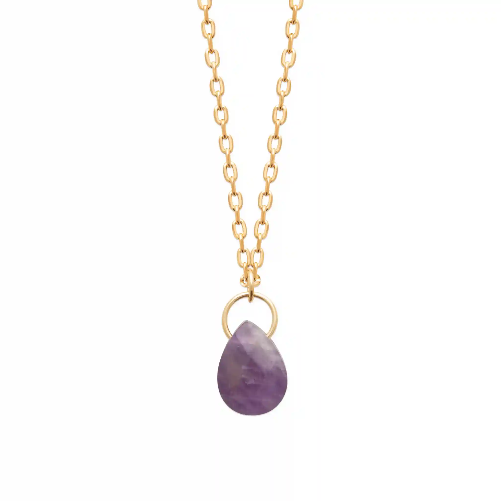 Collier breloque goutte améthyste plaqué or