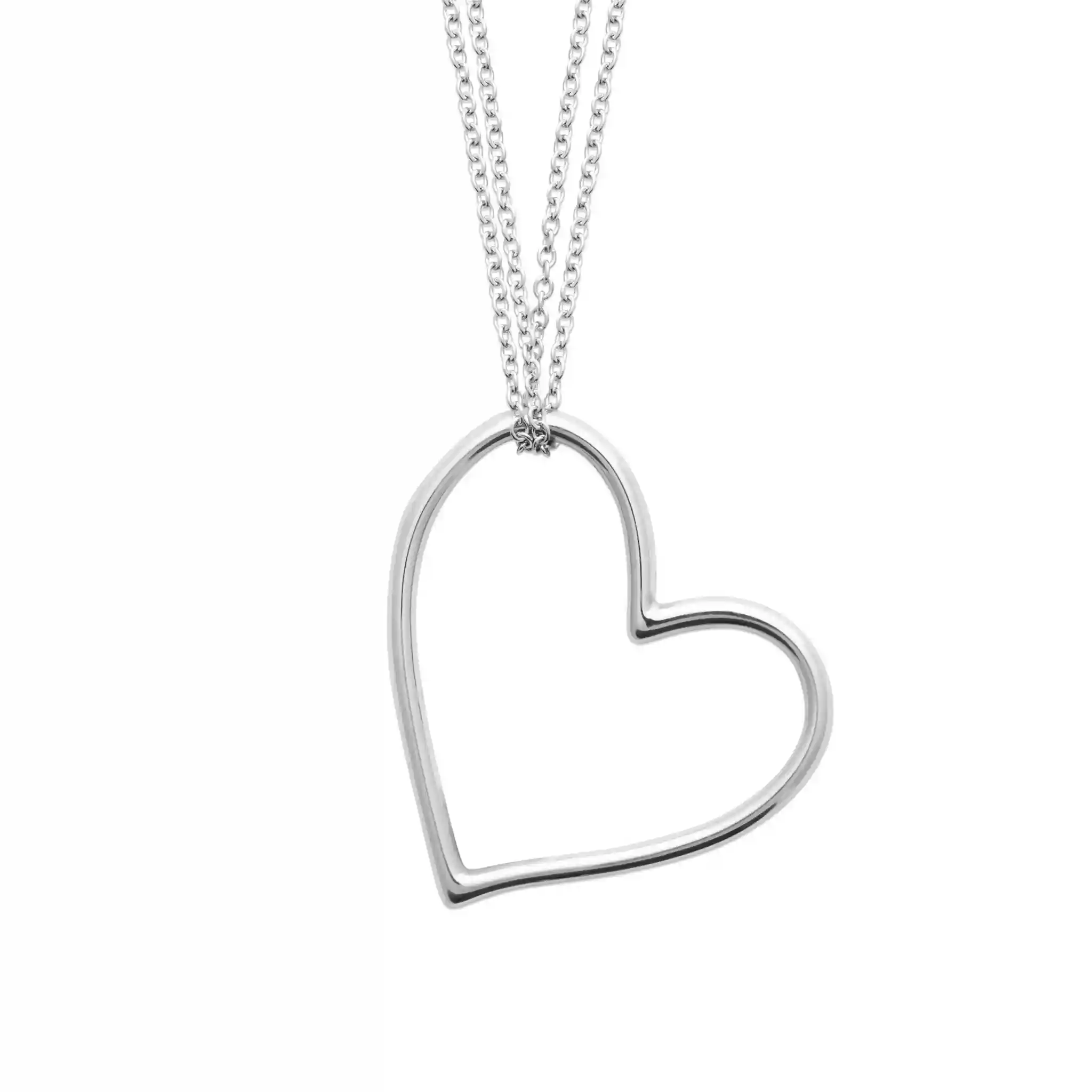 Collier coeur double chaîne acier inoxydable