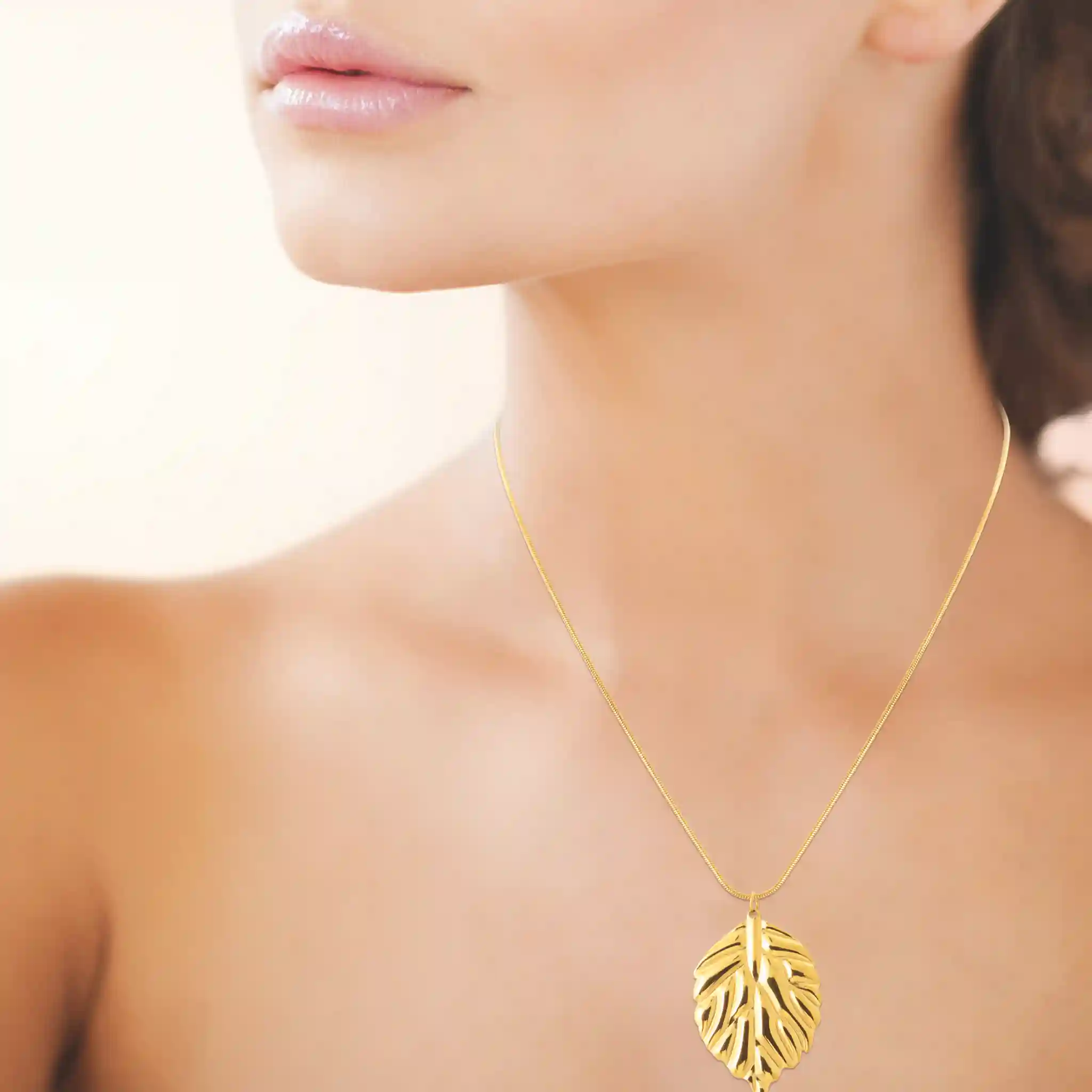 Son design inspiré de la nature en fait une pièce intemporelle et élégante. Chaque détail du pendentif en feuille a été travaillé avec soin pour refléter l’harmonie et la délicatesse. Léger et confortable, il se fait oublier tout en sublimant le décolleté.