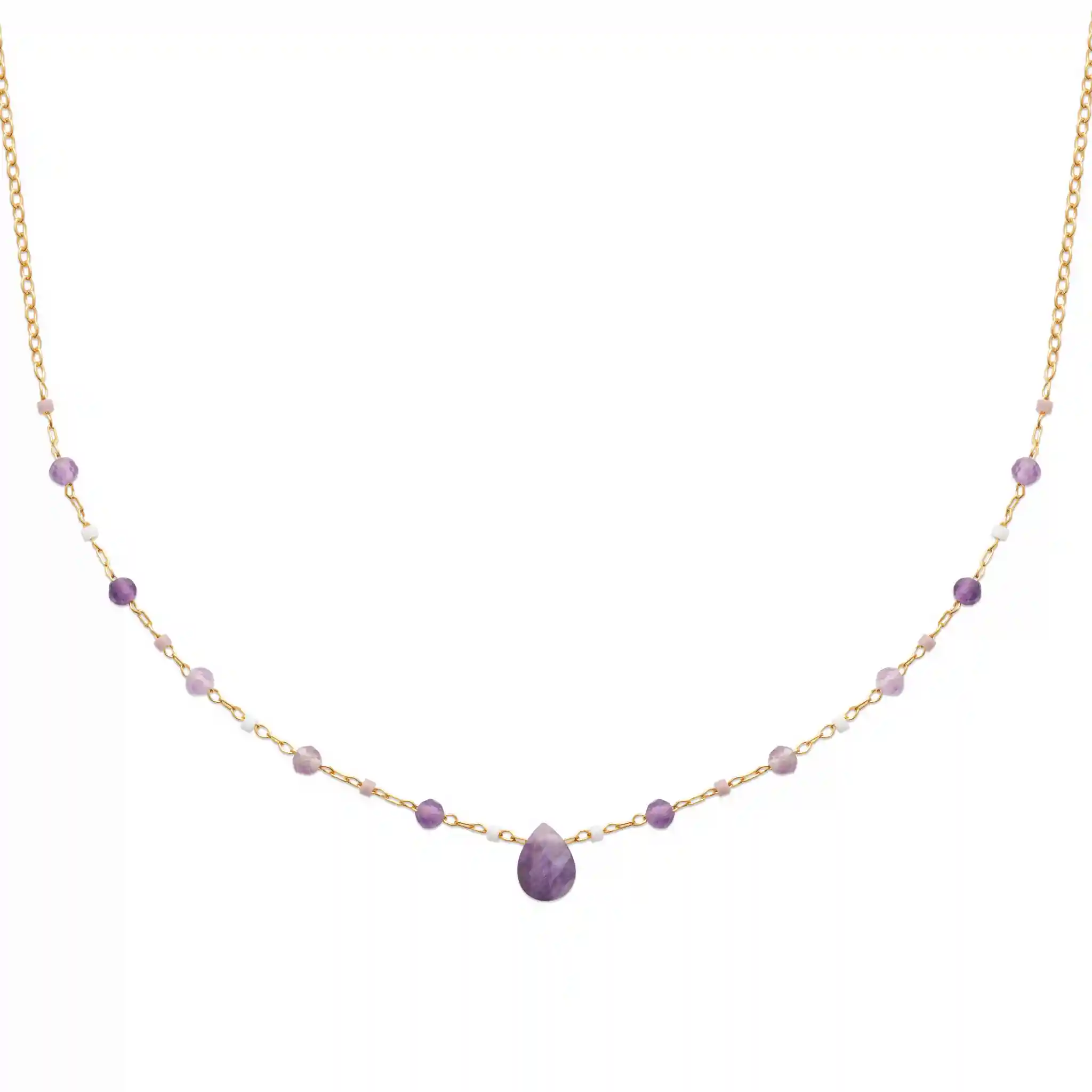 Pourquoi choisir le collier goutte facettée et perles améthystes plaqué or ?