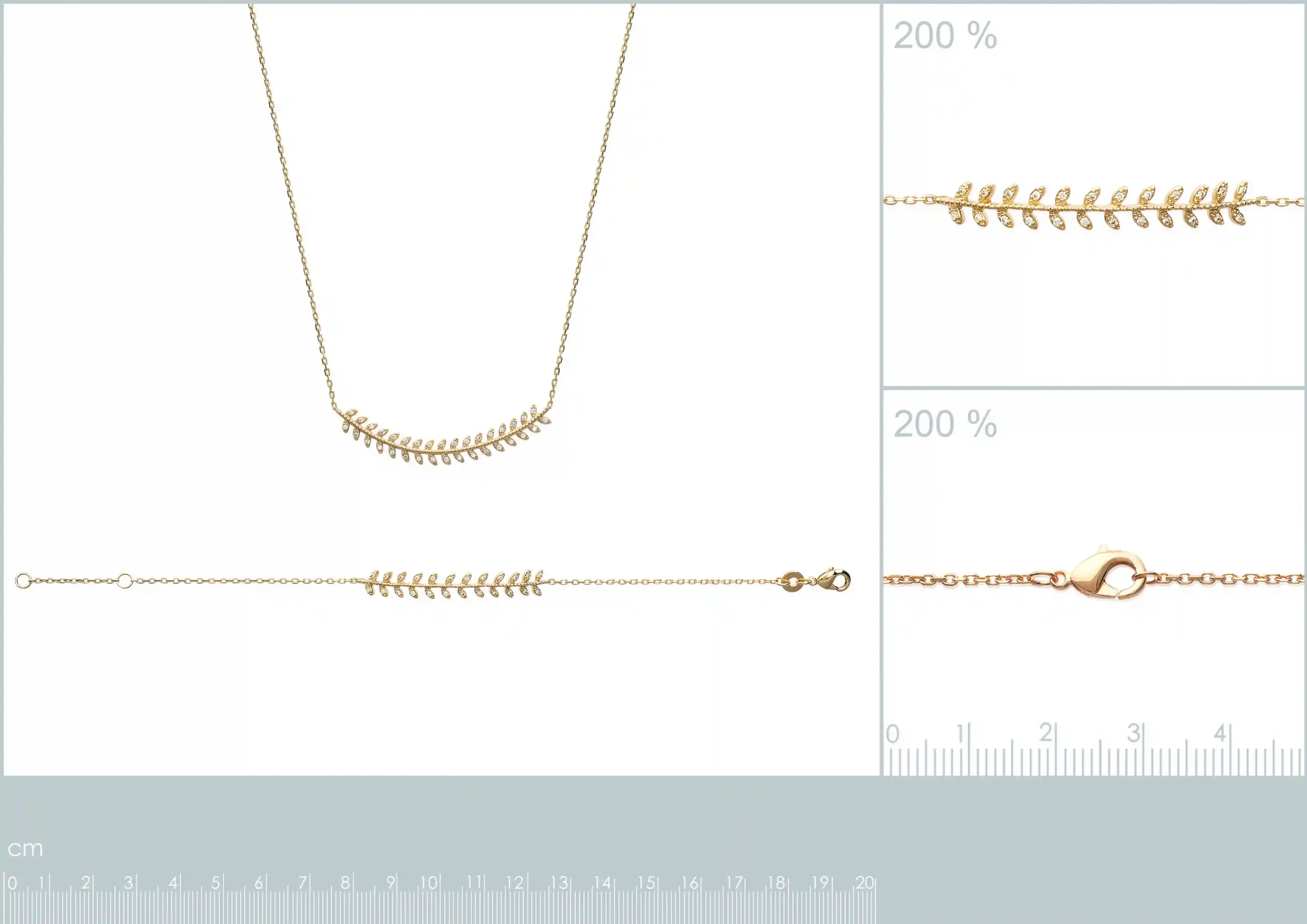 Son plaquage en or 18 carats lui confère une résistance remarquable. Chaque feuille finement travaillée capte la lumière et apporte une touche éclatante au décolleté.