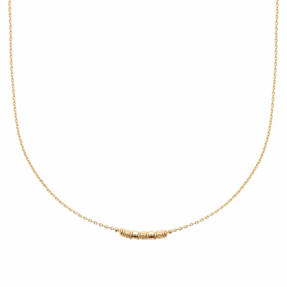 Une Ć©lĆ©gance fluide se dĆ©gage de ce collier au jeu de volumes subtil, pensĆ© comme une prĆ©sence lumineuse autour du cou. Son rythme visuel Ć©voque une fĆ©minitĆ© sĆ»re, attirĆ©e par les bijoux qui trouvent leur force dans lāĆ©quilibre et la simplicitĆ© maĆ®trisĆ©e. Le design alterne petits et larges anneaux, crĆ©ant une cadence harmonieuse entre finesse et caractĆØre. Cette succession de formes rondes capte la lumiĆØre avec naturel et apporte une profondeur discrĆØte, sans rompre la ligne fluide de lāensemble. RĆ©alisĆ© en plaquĆ© or 18 carats, ce collier sāadresse Ć la femme. La chaĆ®ne structurĆ©e met en valeur lāalternance des anneauxā¦