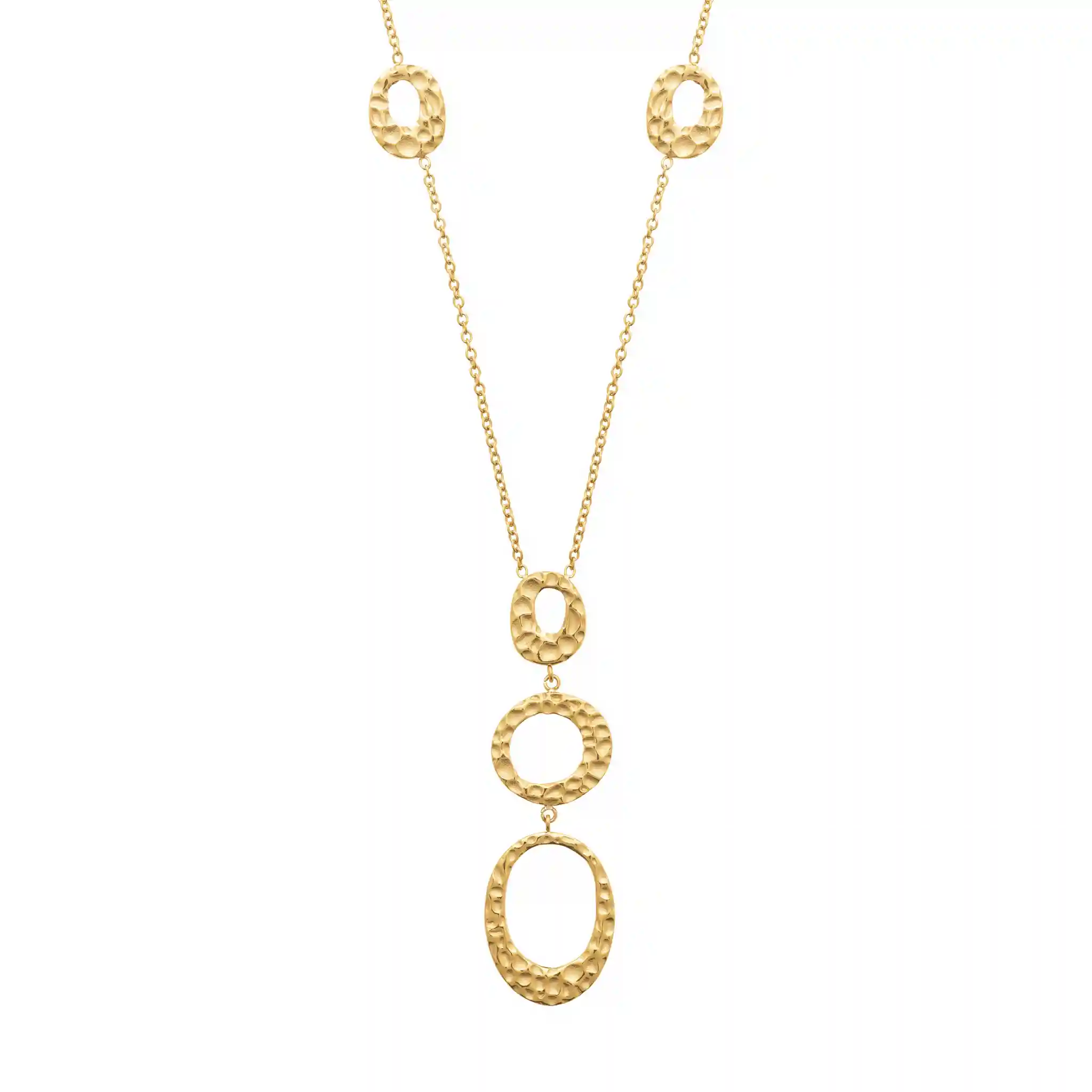 Collier sautoir à pendentifs ovales martelés acier inoxydable doré