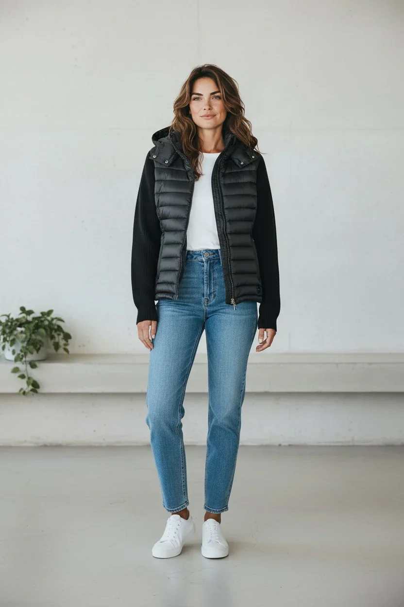 Blouson Woven Smoky matelassé pour femme Veste à capuche et manches en tricot Style: 2095-6ZP Woven Smoky Couleurs disponibles: Noir Alliant confort et style, cette veste matelassée à capuche et manches en maille côtelée douce se distingue par son design original et cintré qui valorise la silhouette. La capuche et le bas réglables par cordon […]