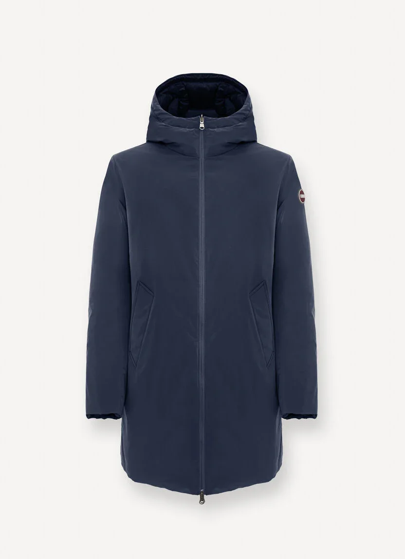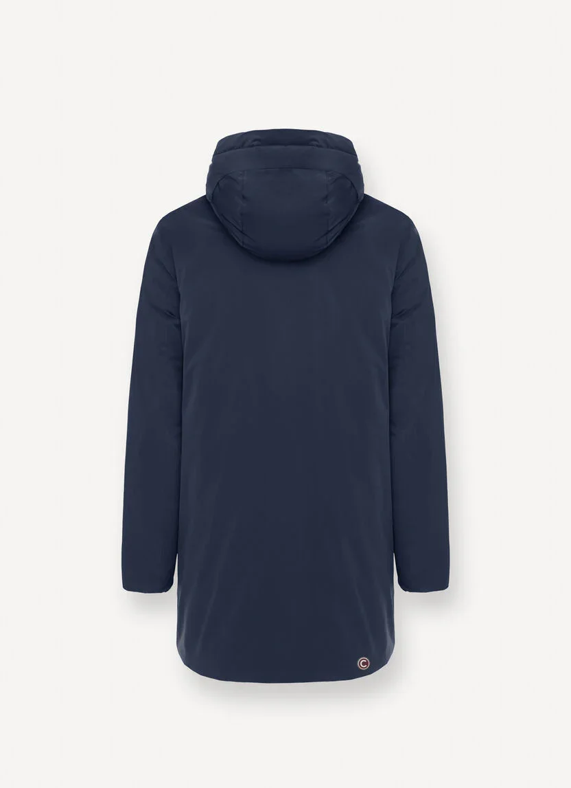 Veste pour homme réversible mi-longue à capuche fixe, réalisée en tissu stretch mat traité hydrofuge et imperméable (résistant à la pression d’une colonne d’eau de 5000 mm). Garnissage en duvet naturel. L’intérieur a été réalisé à l’aide d’un tissu à la construction particulière qui ne nécessite pas de couture et qui crée un motif en V, une alternative au matelassage classique. Pratique et confortable, il se prête à différentes utilisations dans de multiples occasions. La partie lisse est minimaliste et épurée, la partie matelassée est créative et insolite. Un vêtement éclectique et polyvalent pour affronter la saison hivernale.