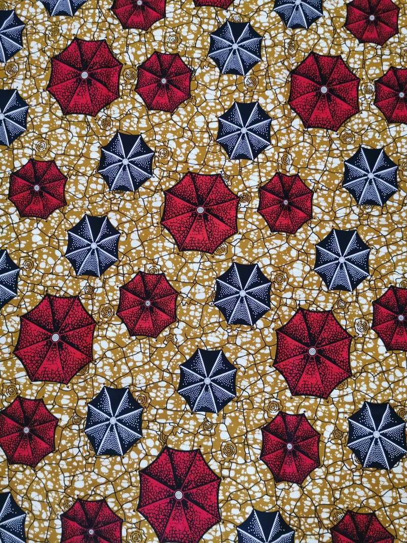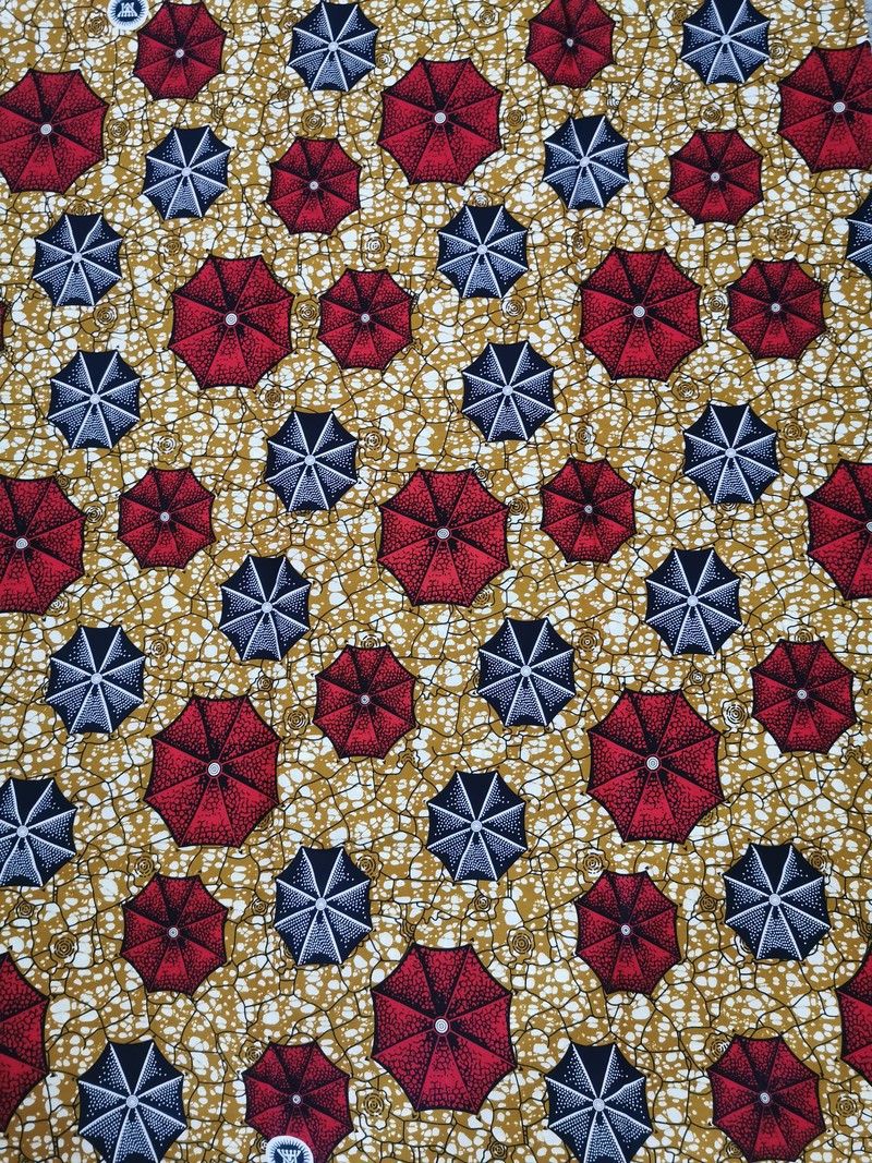 Tissu wax 100% coton. Avec une impression de très belles qualités et des couleurs vives, un design unique et dynamique.