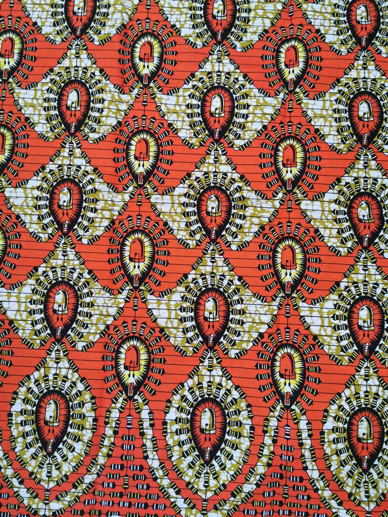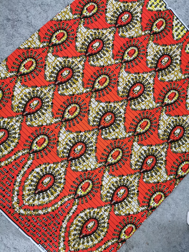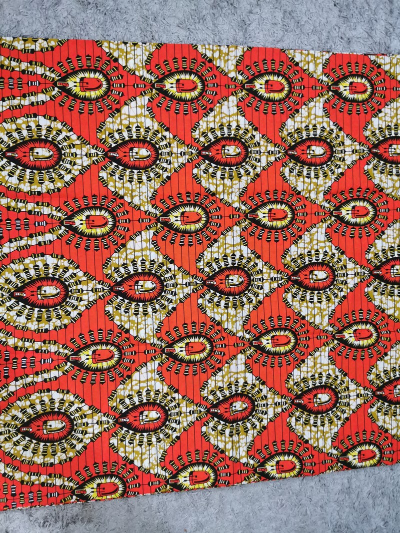 Tissu wax 100% coton. Avec une impression de très belles qualités et des couleurs vives, un design unique et dynamique.