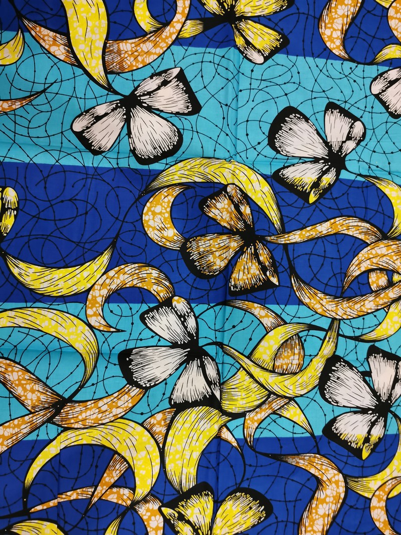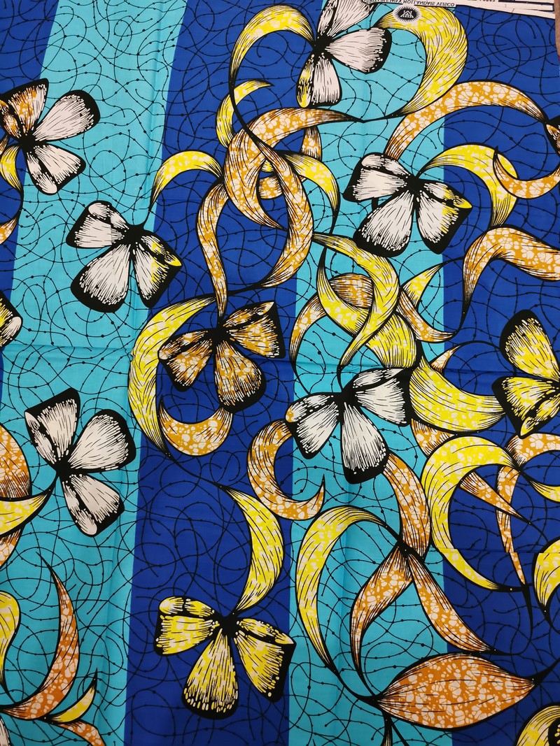 Tissu wax 100% coton. Avec une impression de très belle qualités et des couleurs vives, un design unique et dynamique.