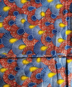 Tissu wax 100% coton. Avec une impression de très belles qualités et des couleurs vives, un design unique et dynamique.
