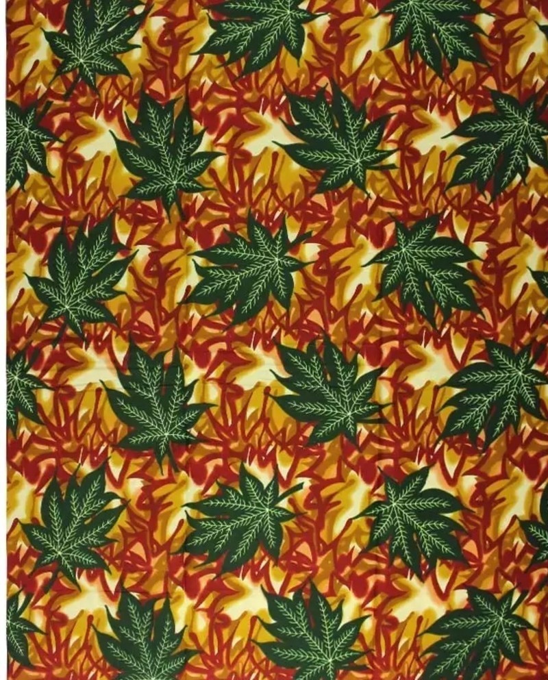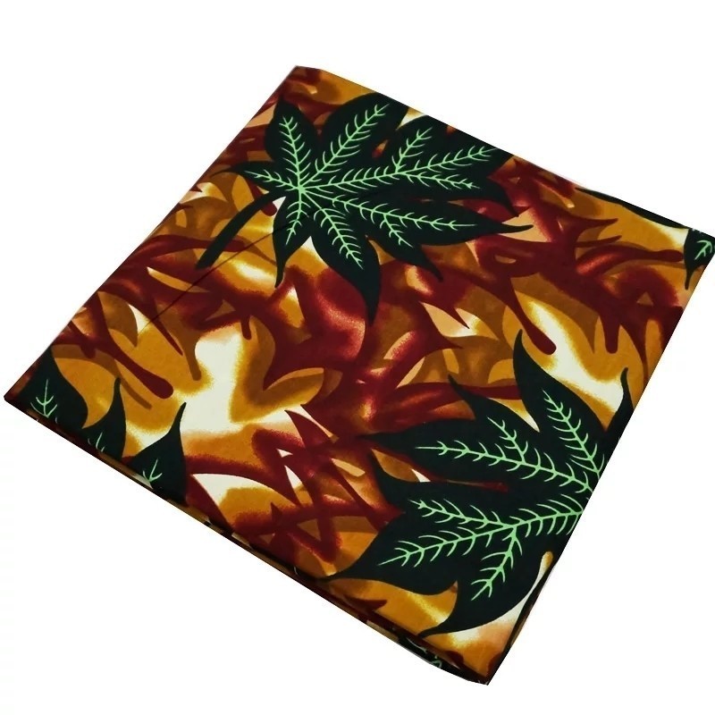 COUPON TISSU WAX AFRICAIN MOTIF FEUILLE DE PAPAYE