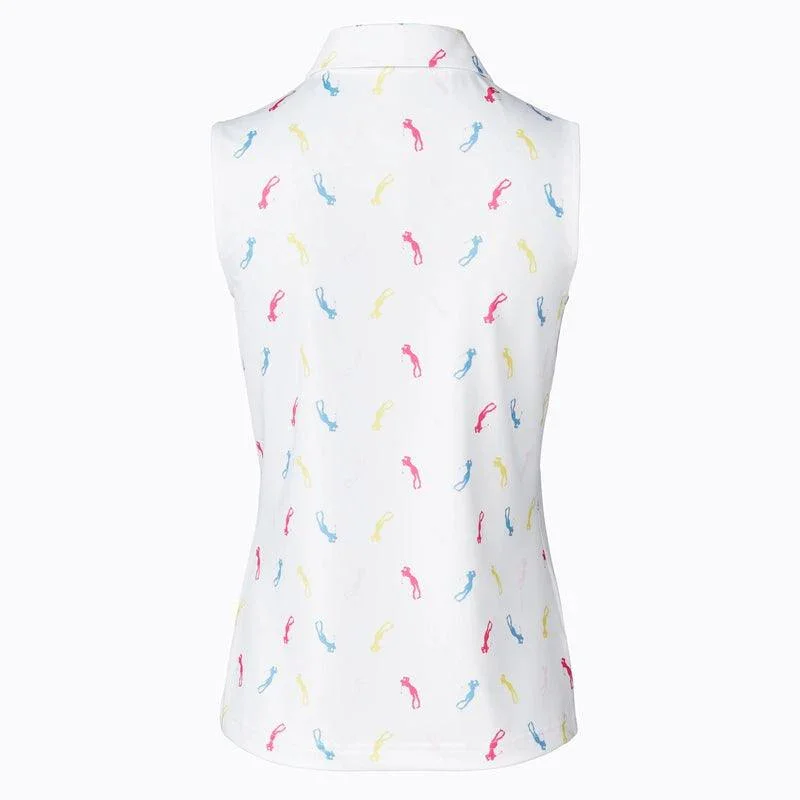 Camilia est une chemise de golf sans manches à motifs avec un col polo de Daily Sports. Fabriqué dans un matériau doux à séchage rapide et fermeture à bouton avec un imprimé Lady Golfer partout.