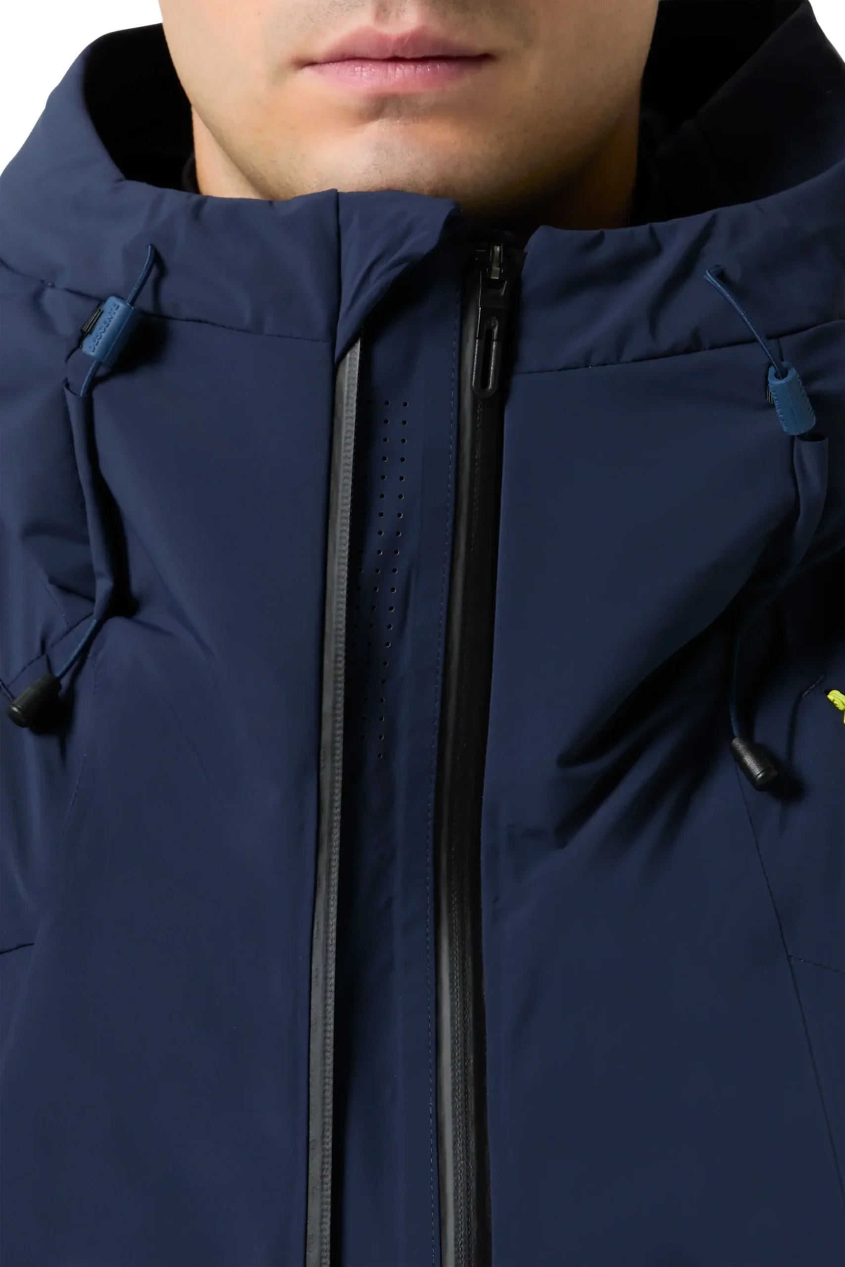 La ventilation à plusieurs endroits et le système respirant unique de Descente permettent une ventilation et un contrôle faciles de la température à l’intérieur de la veste.