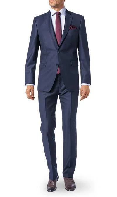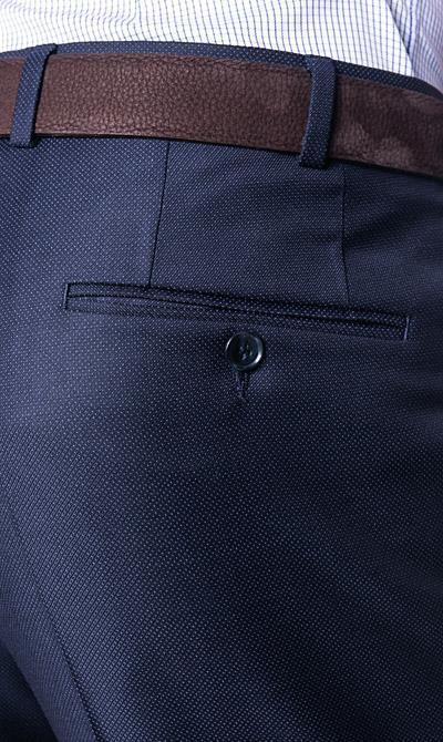 Habit de laine Collection Preference Modèle du veston: Duncan-AMF Modèle du pantalon: Per Tissu: 99652, 99656 Couleur: Marine-22 Coupe: Modern Fit Extérieur: 100% laine REDA (tissu fait en Italie) Doublure: 57% acétate/ 43% viscose