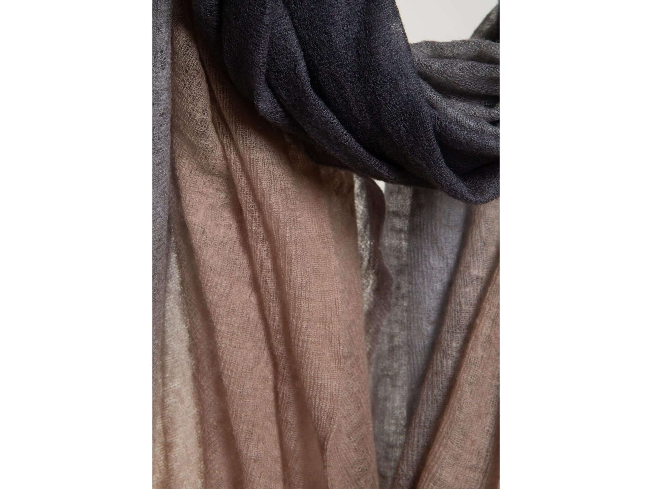 Découvrez l’élégance et la douceur réunies dans notre Écharpe Cloud Kinitter Shawl Dégradée. Tricotée à la main avec un fil en cachemire superfine, elle vous enveloppe d’une chaleur légère et confortable grâce à un traitement unique qui lui confère un subtil effet feutré. Ce modèle délicat et volumineux est parfait pour apporter une touche de raffinement et de bien-être à toutes vos tenues. Un incontournable pour profiter du confort exceptionnel du cachemire avec style.