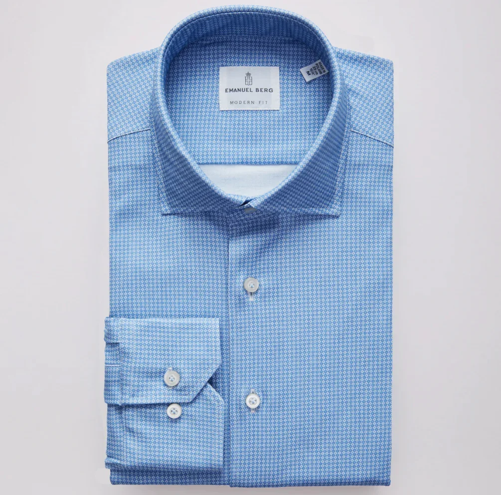 Emanuel Berg – Byron – Chemise manches longues à motifs Albini 4Flex – Modern Fit – Bleu
