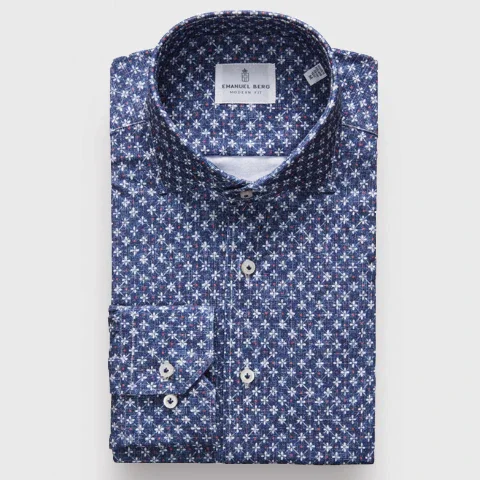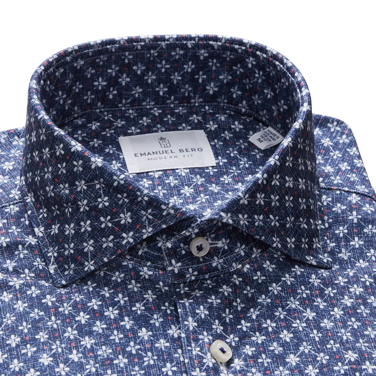 Emanuel Berg – Byron – Chemise manches longues à motifs Albini 4Flex – Modern Fit – Marine