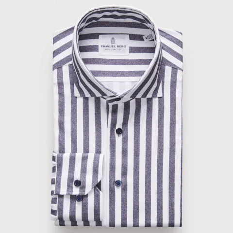 Emanuel Berg – Byron – Chemise manches longues à rayures Albini 4Flex – Modern Fit – Marine/Blanc