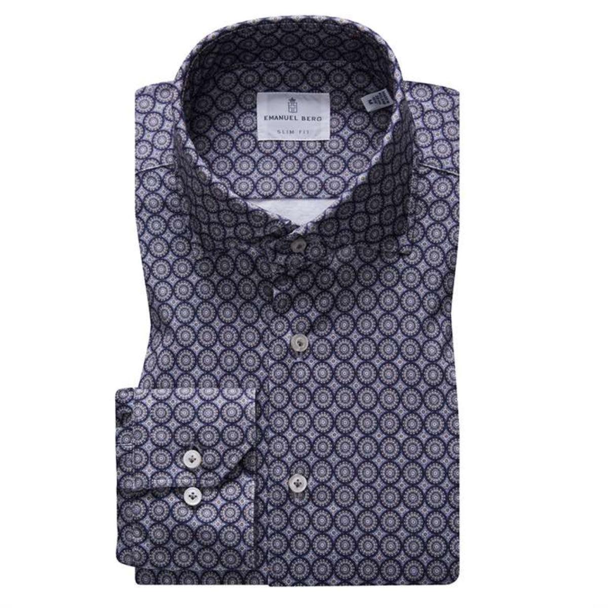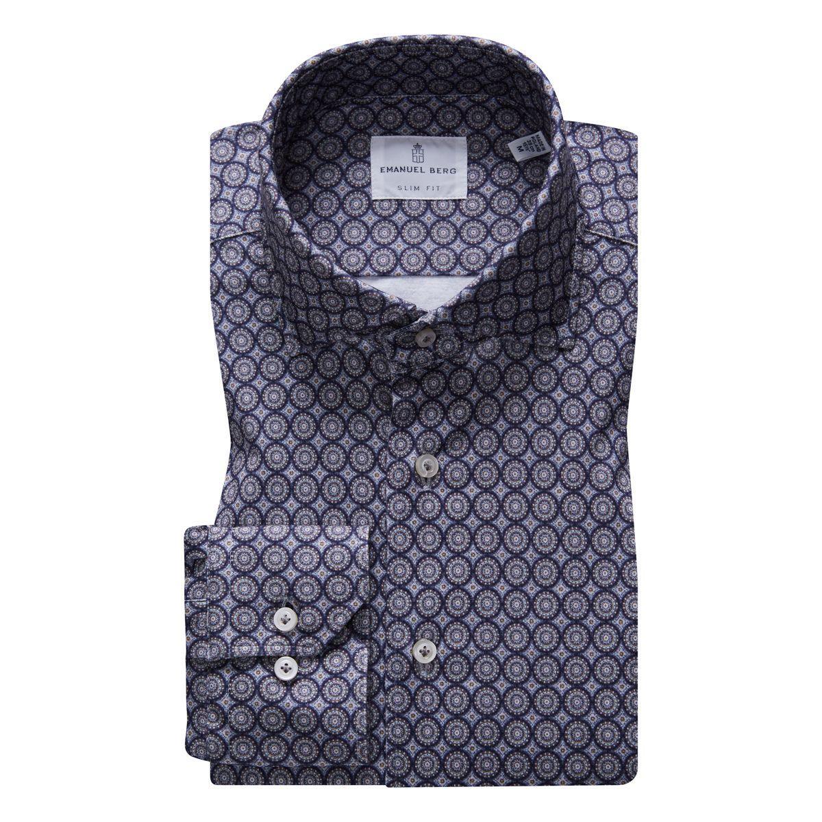 Emanuel Berg – Byron – Chemise manches longues imprimé cercles Albini 4Flex – Modern Fit – Gris