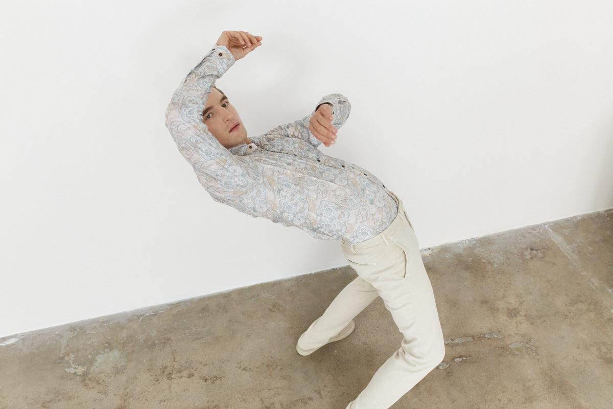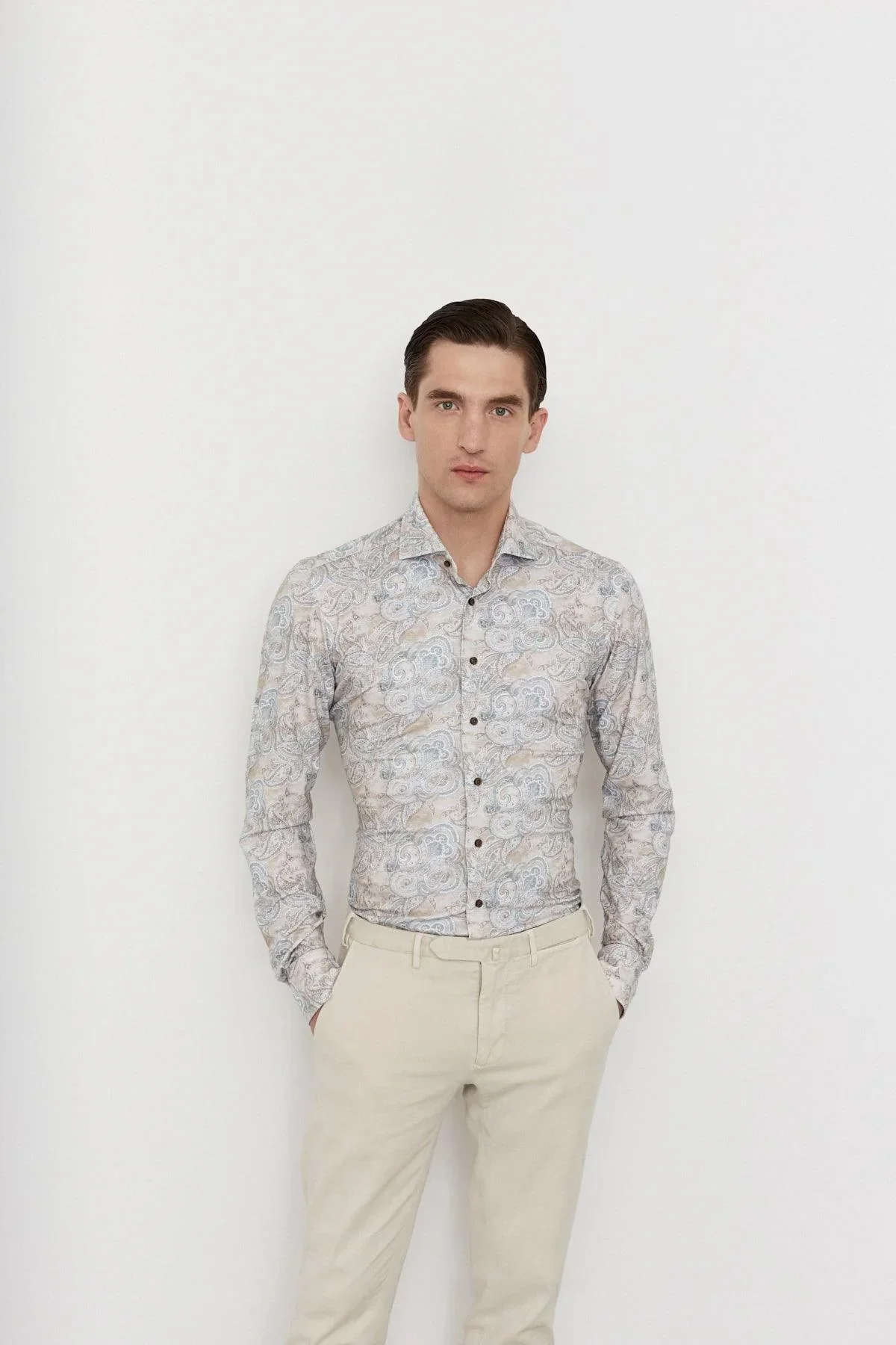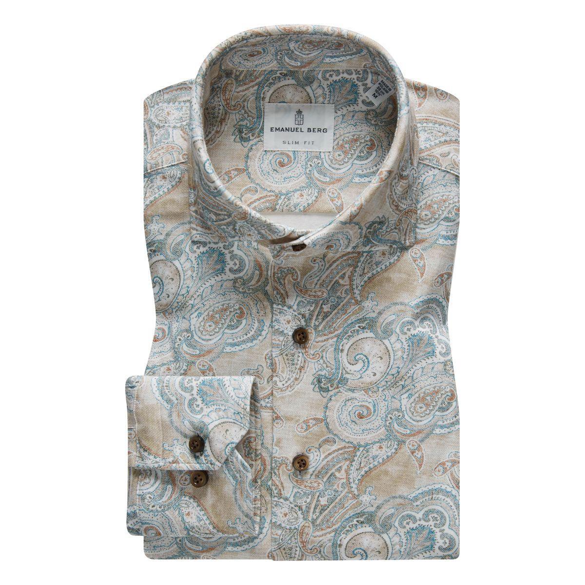 Emanuel Berg – Byron – Chemise manches longues paisley Albini 4Flex – Modern Fit – Beige