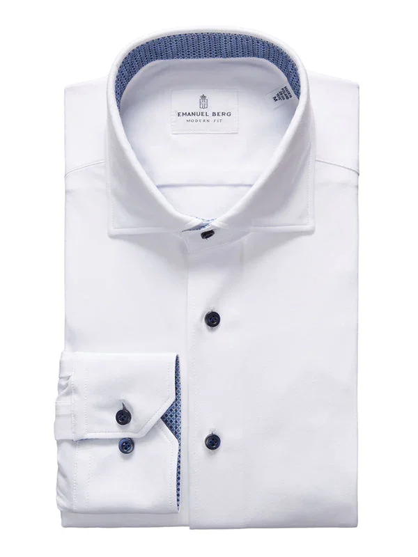 Emanuel Berg – Byron – Chemise manches longues unie Albini 4Flex – Modern Fit – Blanc