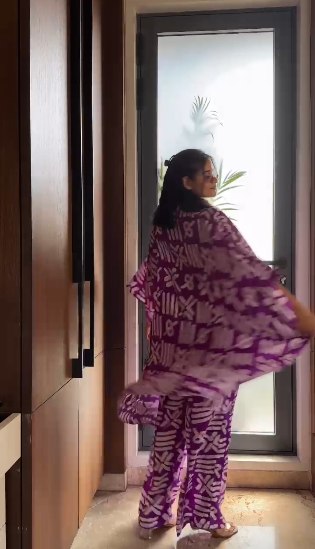 Pantalon : Taille élastiquée pour un ajustement confortable, jambes larges pour un effet drapé gracieux.