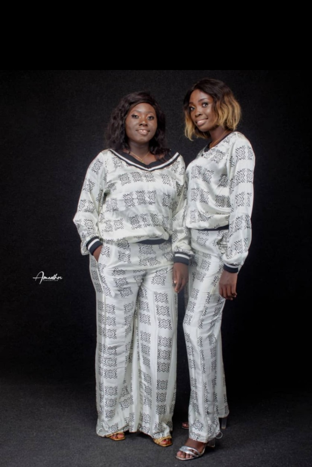Bel ensemble d’inspiration africaine deux pièces en soie et mousseline imprime