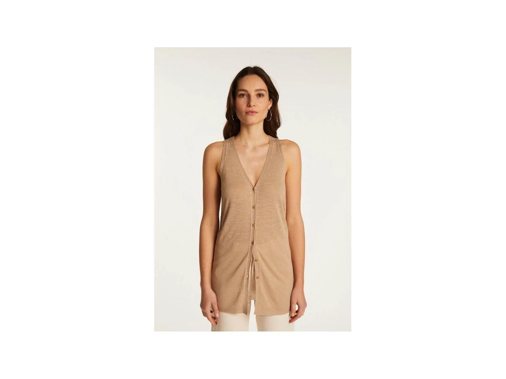 Léger et élégant, le gilet à manches courtes Dara sublime la texture naturelle du lin slub pour un confort optimal lors des journées chaudes. Sa composition en viscose, lin et polyamide offre une sensation aérienne tout en restant raffinée. Parfait pour affronter la canicule avec style, il se marie idéalement avec le pantalon Débora pour une tenue estivale chic et décontractée.