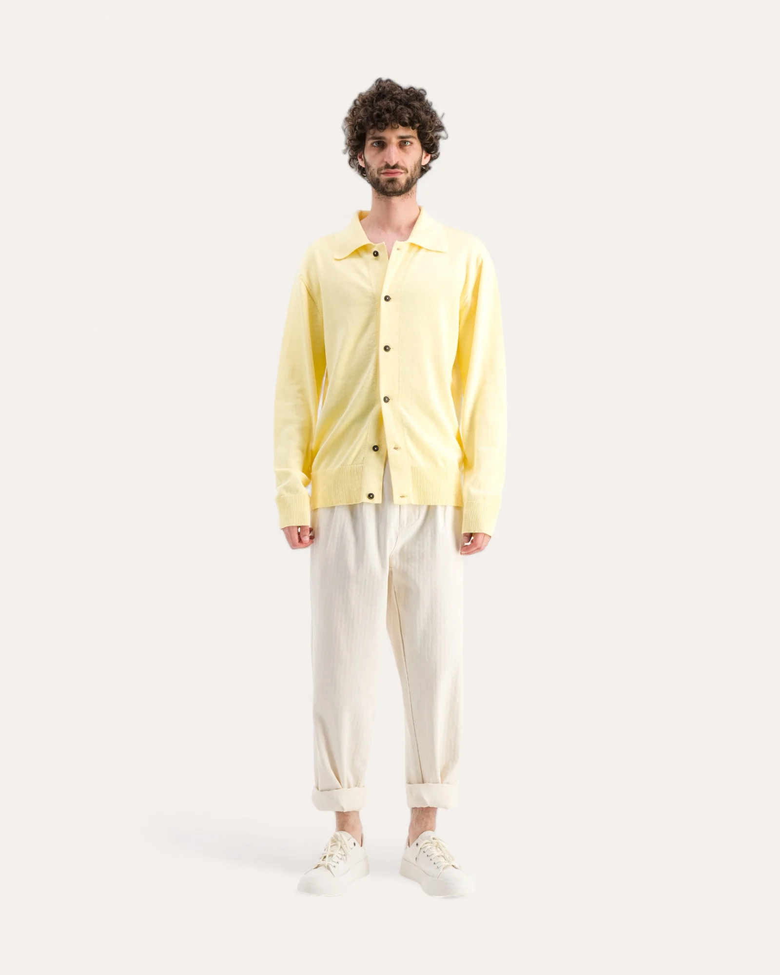 Le cardigan HARRY est un gilet boutonné léger avec un col polo, tricoté en fil 100% coton et au toucher doux. Il est fini avec un ourlet à côtes fines au bas et aux poignets, ainsi qu’une patte de boutonnage à 6 boutons en corne naturelle.