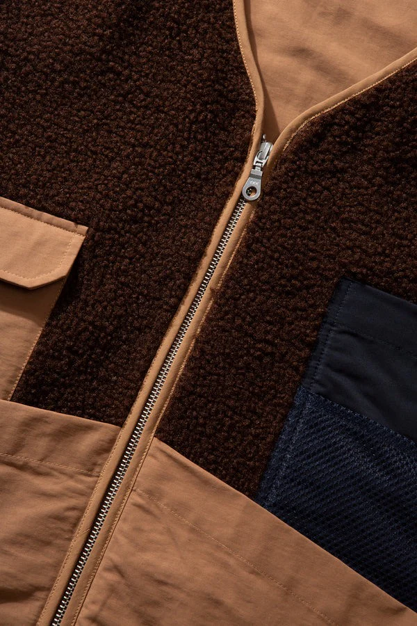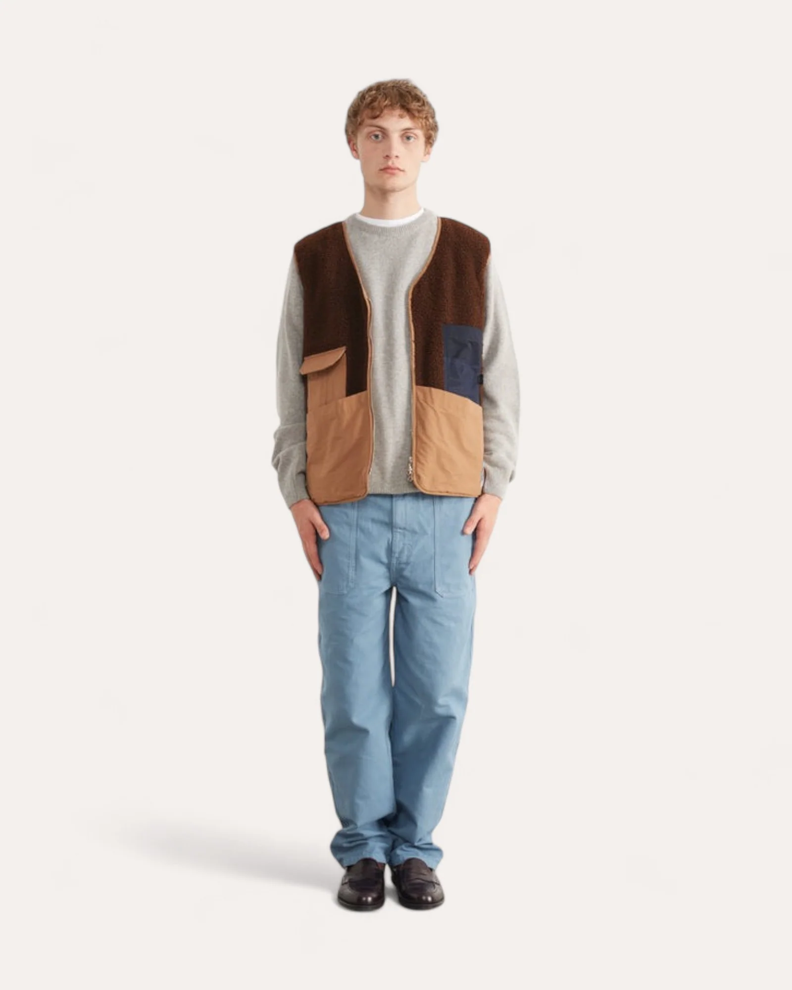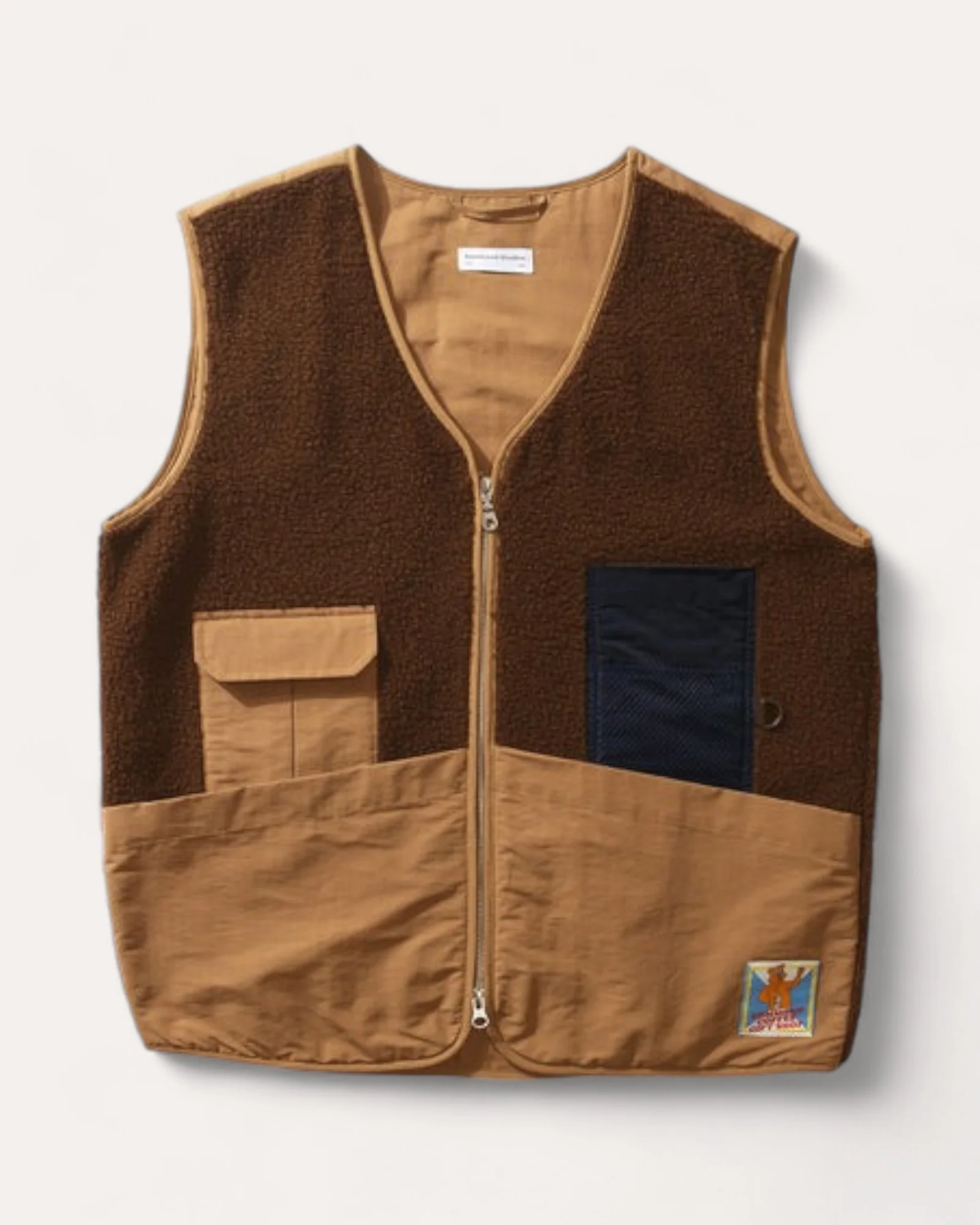 Gilet Edmmond Studios combinant différentes textures. Avec une fermeture à glissière métallique sur le devant et deux poches pour donner la touche de couleur que vous recherchez cette saison. Patch en bas à gauche. A porter sur un hoodie ou une chemise. Prenez votre taille habituelle. Composition : 100% Polyester