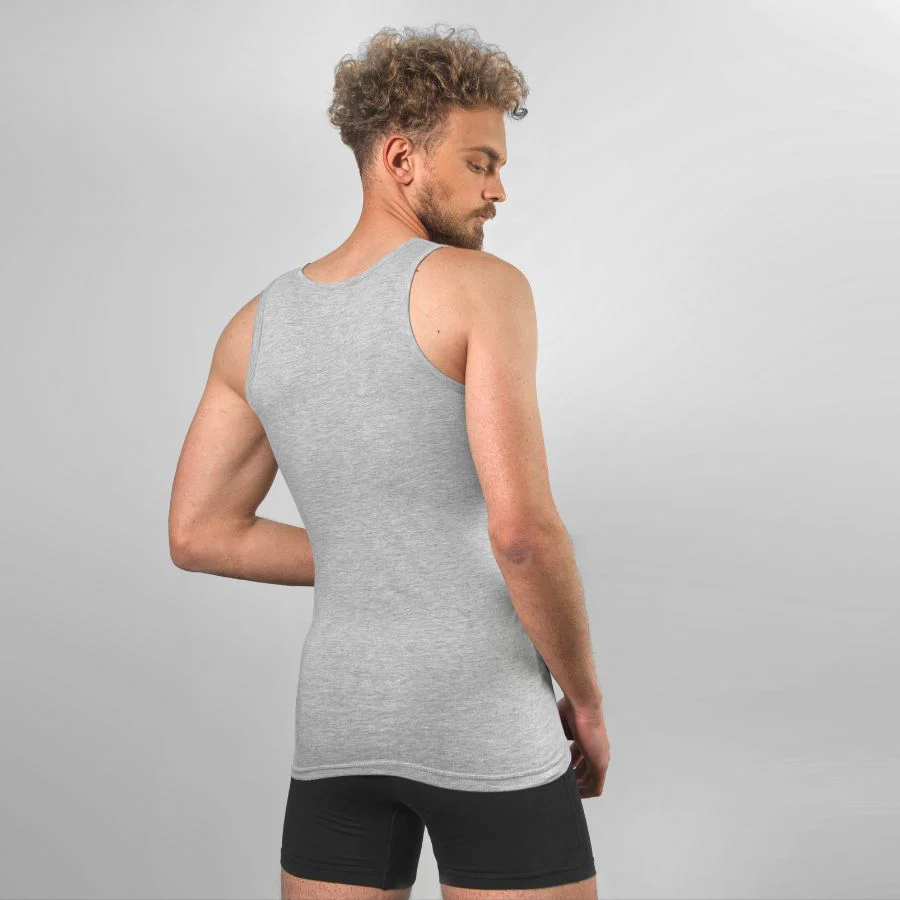 Herren Unterhemd in modernem Grau die ideale Basis für einen unkomplizierten und gleichzeitig eleganten Alltagsoutfit.