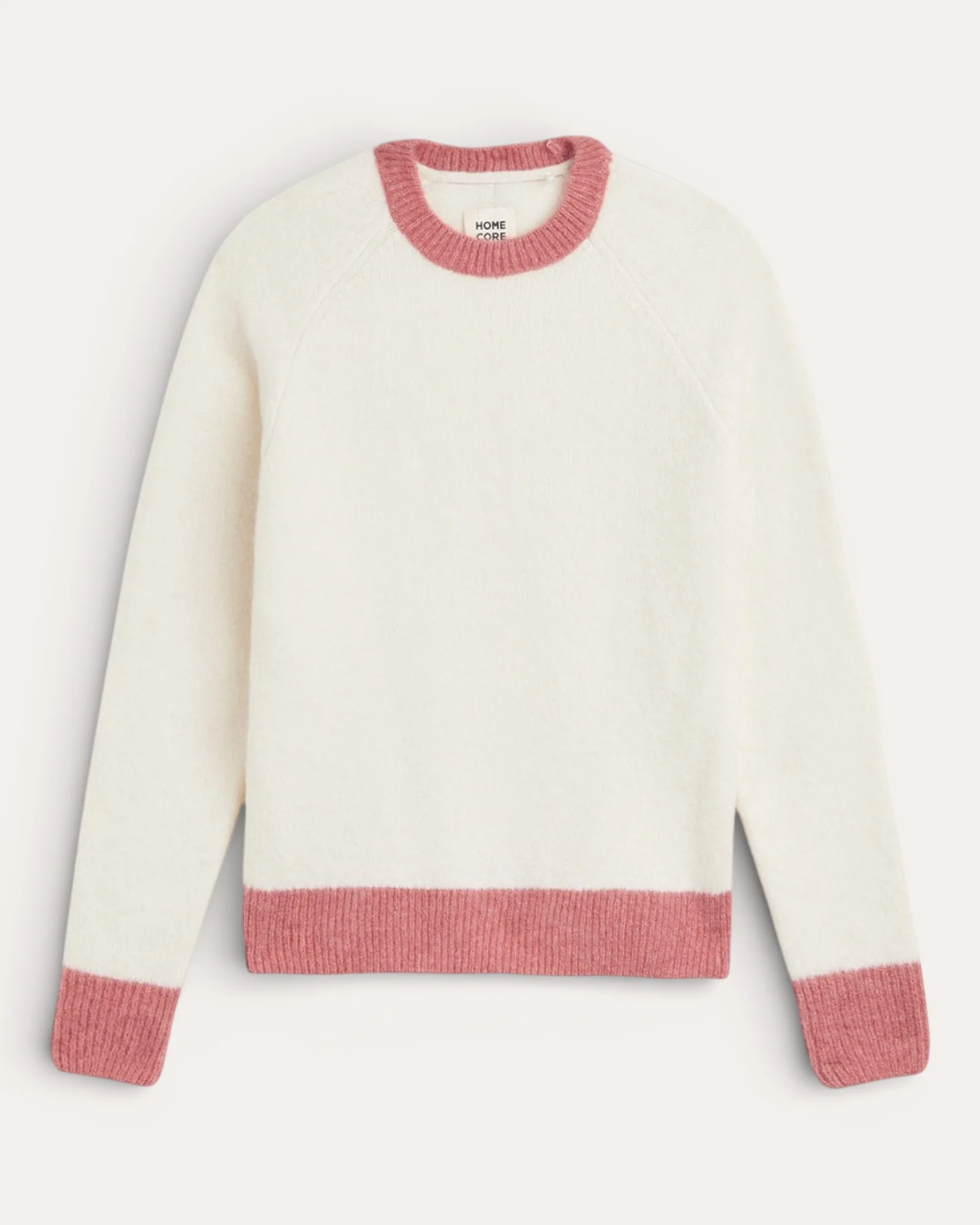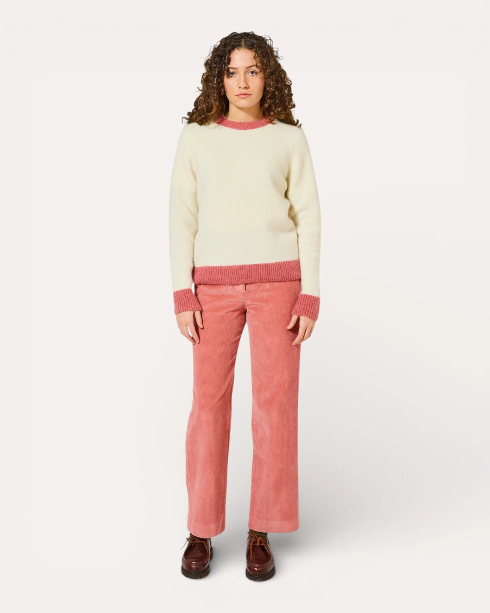 Esthétique Intemporelle : Le contraste entre les teintes crème et rose apporte une touche de fraîcheur et de modernité à ce basique du vestiaire.