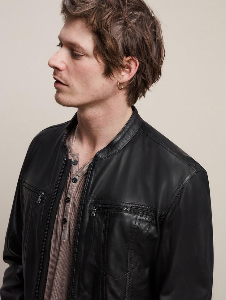 Une silhouette denim traditionnelle confectionnée à partir d’un cuir de mouton fin, cette veste réinterprétée est le reflet parfait d’un style décontracté. Ce jacket offre une apparence authentiquement d’inspiration vintage, tandis que les fermetures éclair tendance offrent une finition classique et cool.