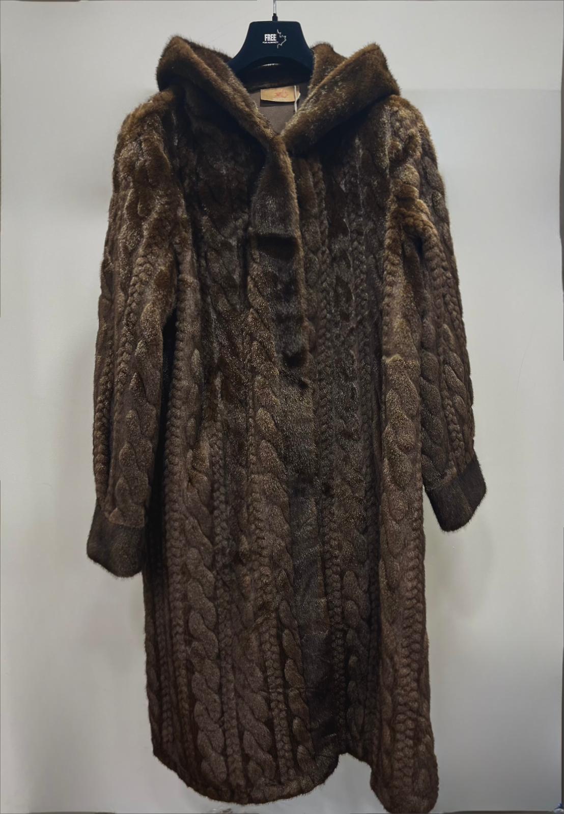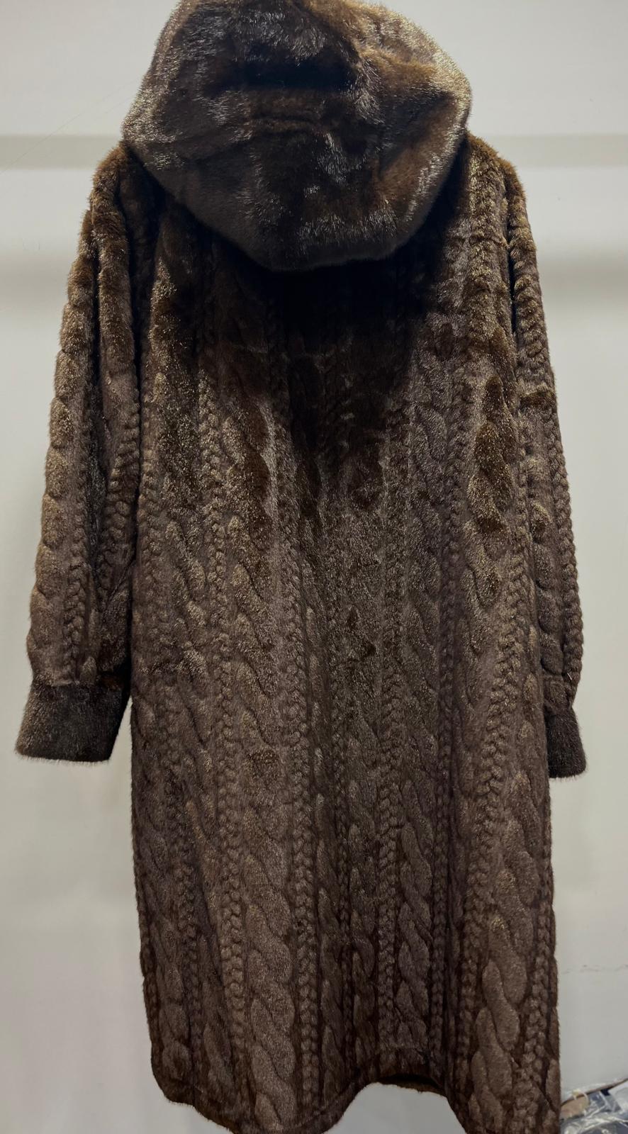 Long manteau fourrure torsadé chocolat