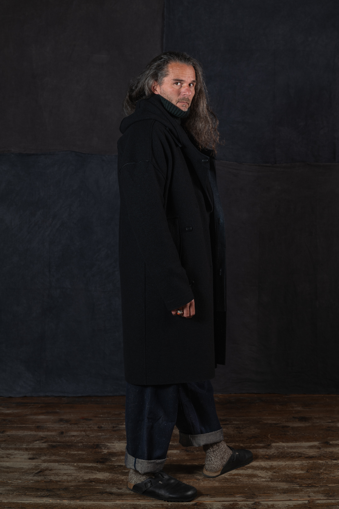 Le manteau Arashu est la rencontre entre le Duffle Coat de l’armée britannique des années 40 et de la bure des moines franciscains. Un manteau idéal pour une utilisation urbaine. 100% Laine. 430gr/M2. Tissu origine Italie.