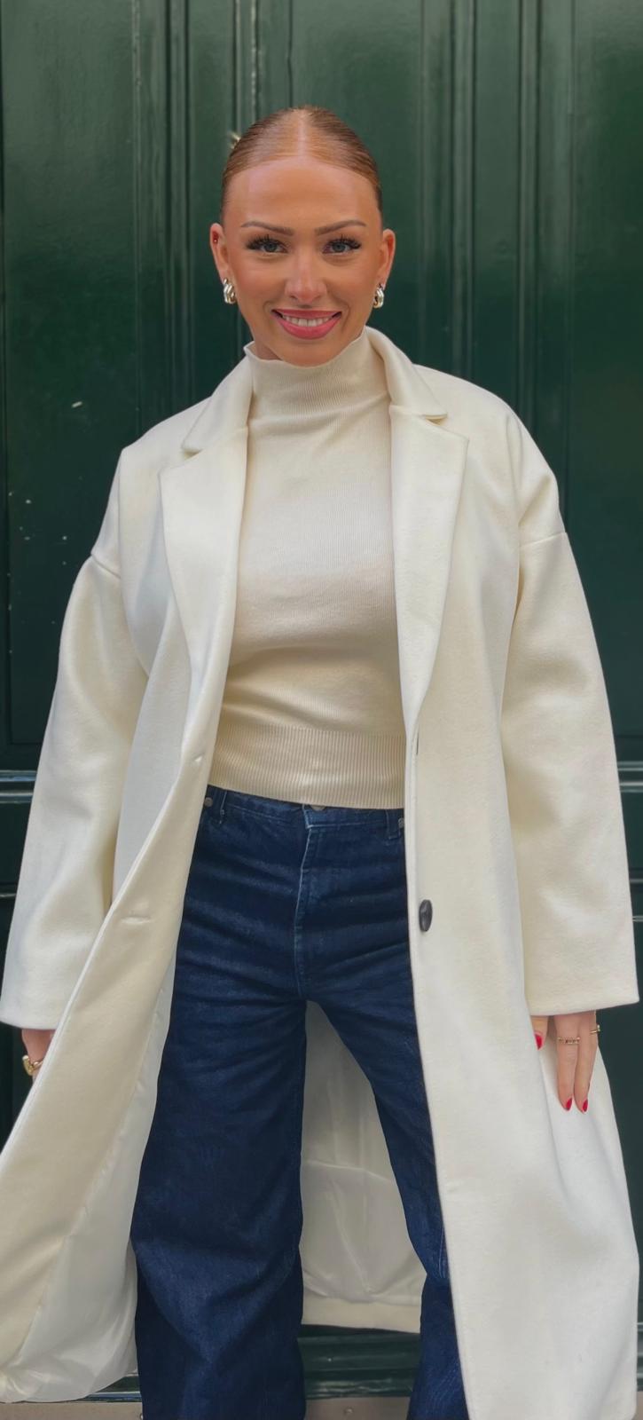 Découvrez notre manteau long uni, une pièce intemporelle qui sublime chaque silhouette (blanc)