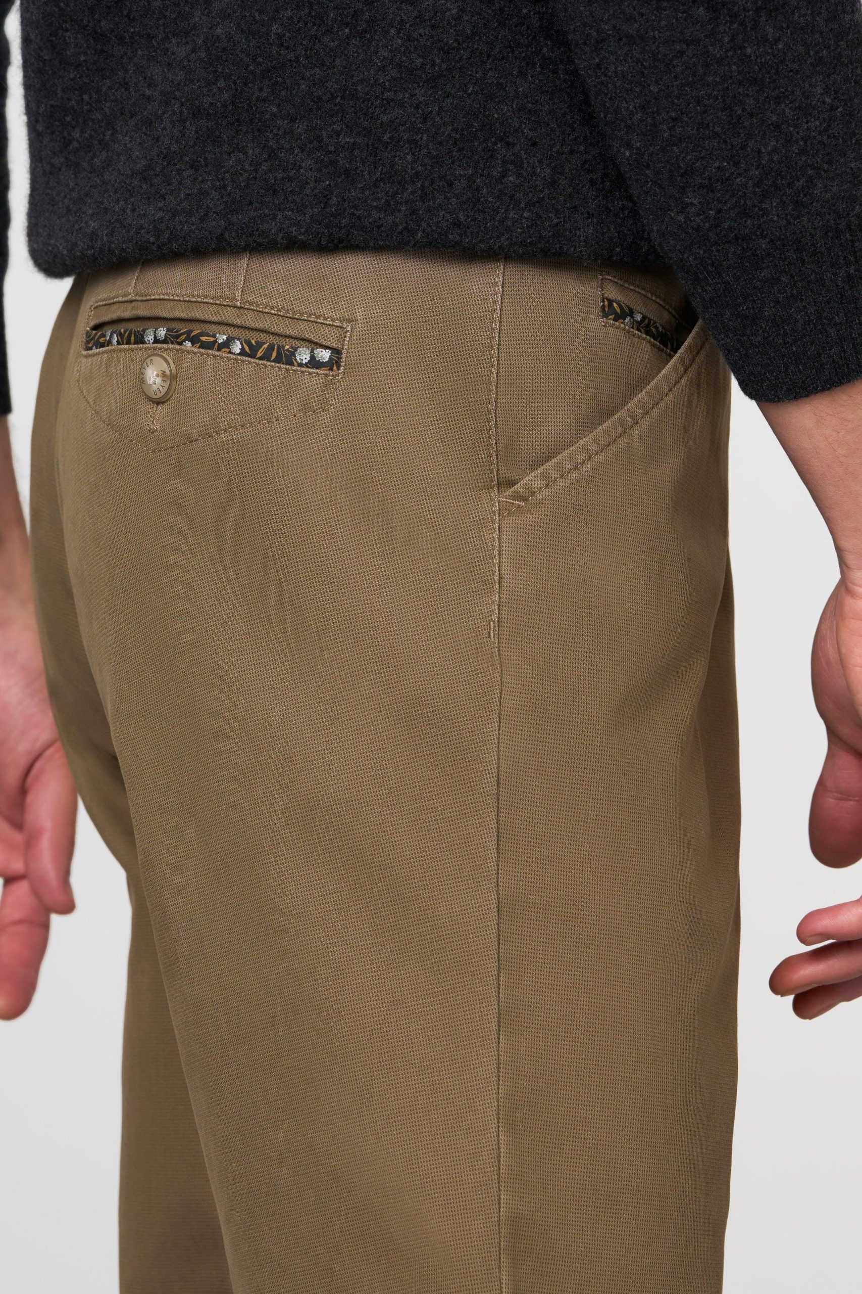 Ce pantalon sportif aux magnifiques couleurs tendance offre un look élégant et décontracté avec ses oppositions assortis avec précision sur les poches. Il assure un confort maximal grâce à la qualité super-stretch et à la ceinture spéciale à finition arrondie. Fabriqué en twill de coton BIO de haute qualité, ce pantalon possède une texture agréablement douce. La poche de sécurité dissimulée pour ranger votre monnaie et la carte de crédit, ainsi que la doublure intérieure multicolore témoignent de l’attention portée aux détails dans la confection de ce chino.