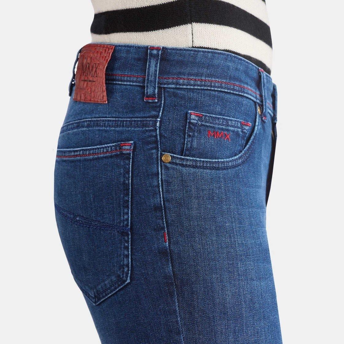 L’équité d’abord! Des conditions de fabrication équitables et le respect des normes écologiques sont extrêmement importants pour nous. Ces jeans en denim à cinq poches sont faits de coton équitable et sont fabriqués dans nos propres usines certifiées commerce équitable. Les coutures contrastées et la subtile finition vintage caractérisent le look moderne et authentique de ce jean en denim. Ils combinent une silhouette élancée et un confort ultime: un ajustement parfait est garanti grâce à la ceinture à contour spécial et au tissu extérieur en coton de haute qualité. Des détails classiques tels que le logo brodé à la main, la doublure tissée de couleur et le cristal Swarovski à la braguette donnent à ce pantalon la touche finale.