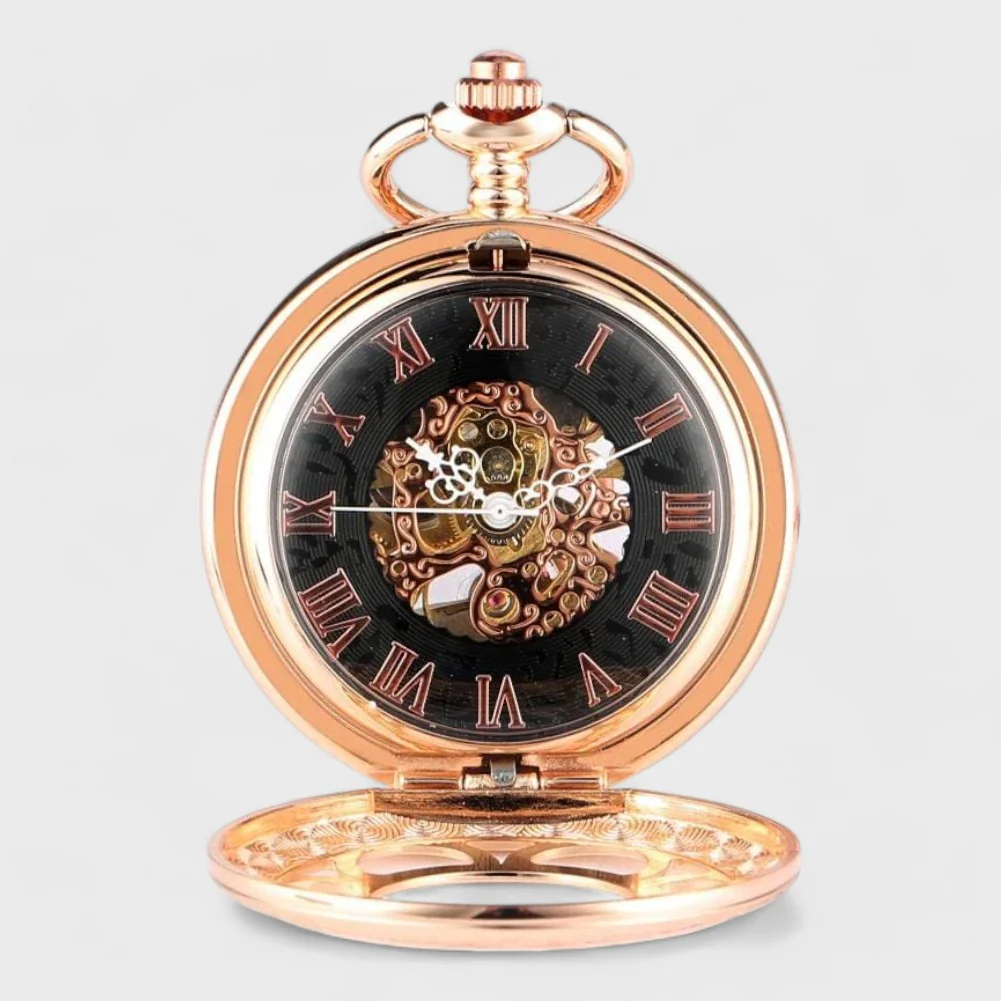 Cette montre de poche rose est une déclaration de sophistication, offrant un aperçu fascinant de son mécanisme interne à travers son cadran transparent. Parfaite pour ceux qui veulent combiner élégance et technicité, elle se porte en toute occasion, du rendez-vous d’affaires à la soirée de gala.