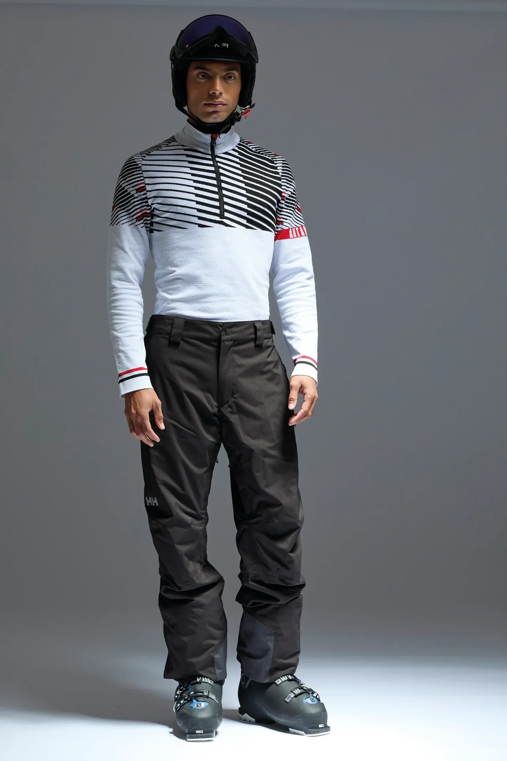 Le chandail Kant-Mak-M pour homme allie élégance et performance grâce à son col zippé et son tissu technique DHtech 400. Composé à 65 % de polypropylène, 33 % de polyamide et 2 % d’élasthanne, il assure une excellente évacuation de l’humidité tout en maintenant la chaleur corporelle. Sa coupe ajustée souligne la silhouette avec raffinement — il est conseillé de choisir une taille au-dessus pour un confort optimal. Disponible en Black/Dark Grey et White/Black, ce modèle, fabriqué en Italie, incarne un design intemporel pour un style sophistiqué au quotidien.