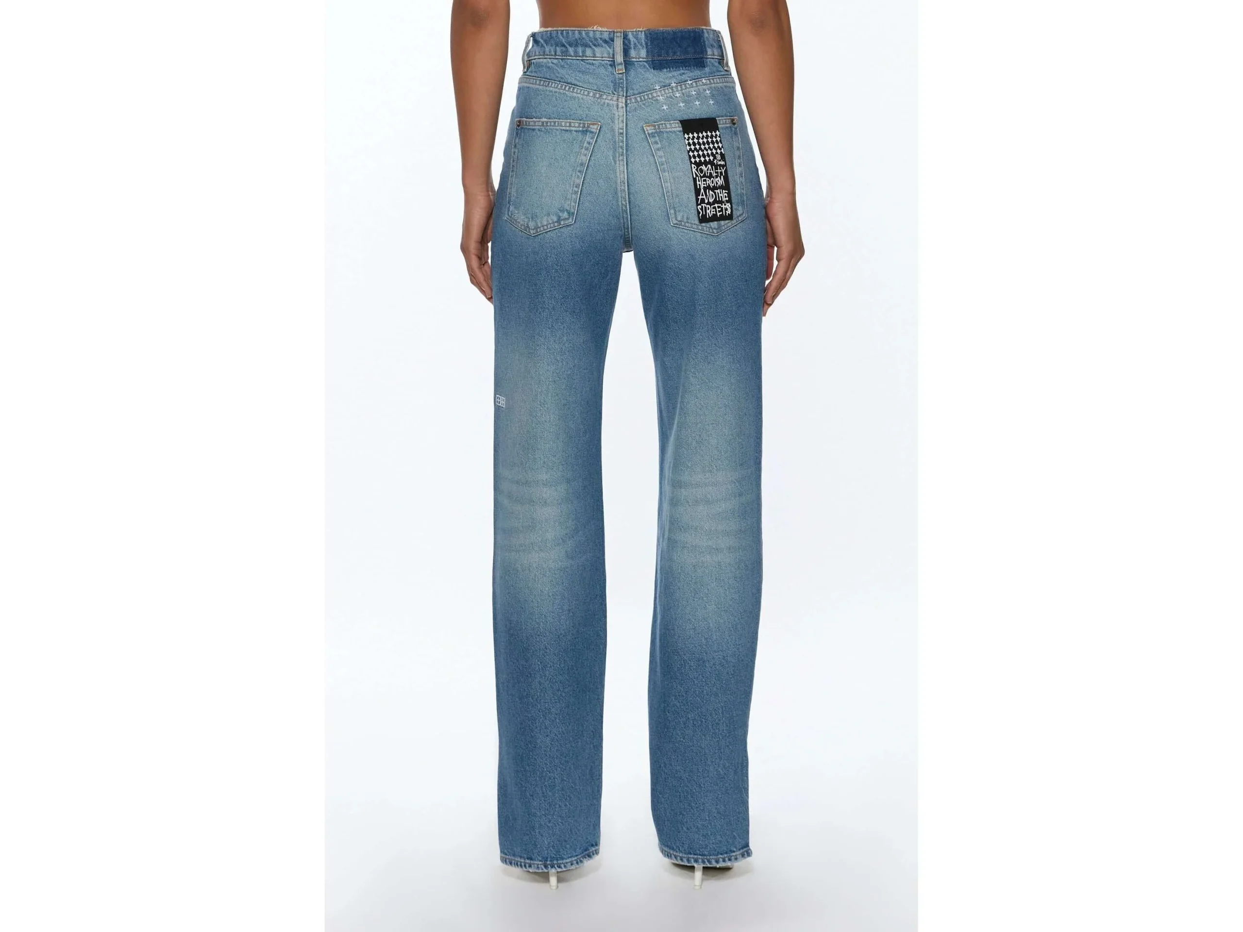 Ce jean tapered décontracté et long présente une taille très haute pour un confort optimal. Confectionné en denim rigide européen de qualité supérieure, il arbore une teinte bleu clair avec des effets vintage et des marques d’usure délicates, notamment un léger ponçage à la taille, aux poches et à l’ourlet. Il se distingue par des fentes latérales à l’ourlet, un style classique à cinq poches, des détails signés Ksubi comme la quincaillerie, le T-box et la broderie 3×4, ainsi qu’une étiquette amovible sur la poche arrière droite. Associez-le à la veste Cinched Jacket Crop Tru Vintage pour un look décontracté mais sophistiqué.
