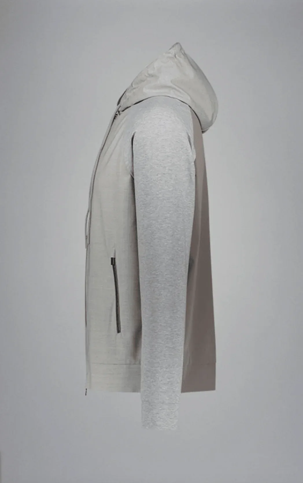 Découvrez notre hoody Loro Piana Storm System™ en édition limitée de Paul & Shark. Fabriqué en Italie avec un tissu de laine imperméable et soie de Loro Piana, ce hoody apporte une protection contre les intempéries avec style. Les manches en coton et élasthanne et le dos en polyester et élasthanne offrent un confort optimal. Disponible en gris.