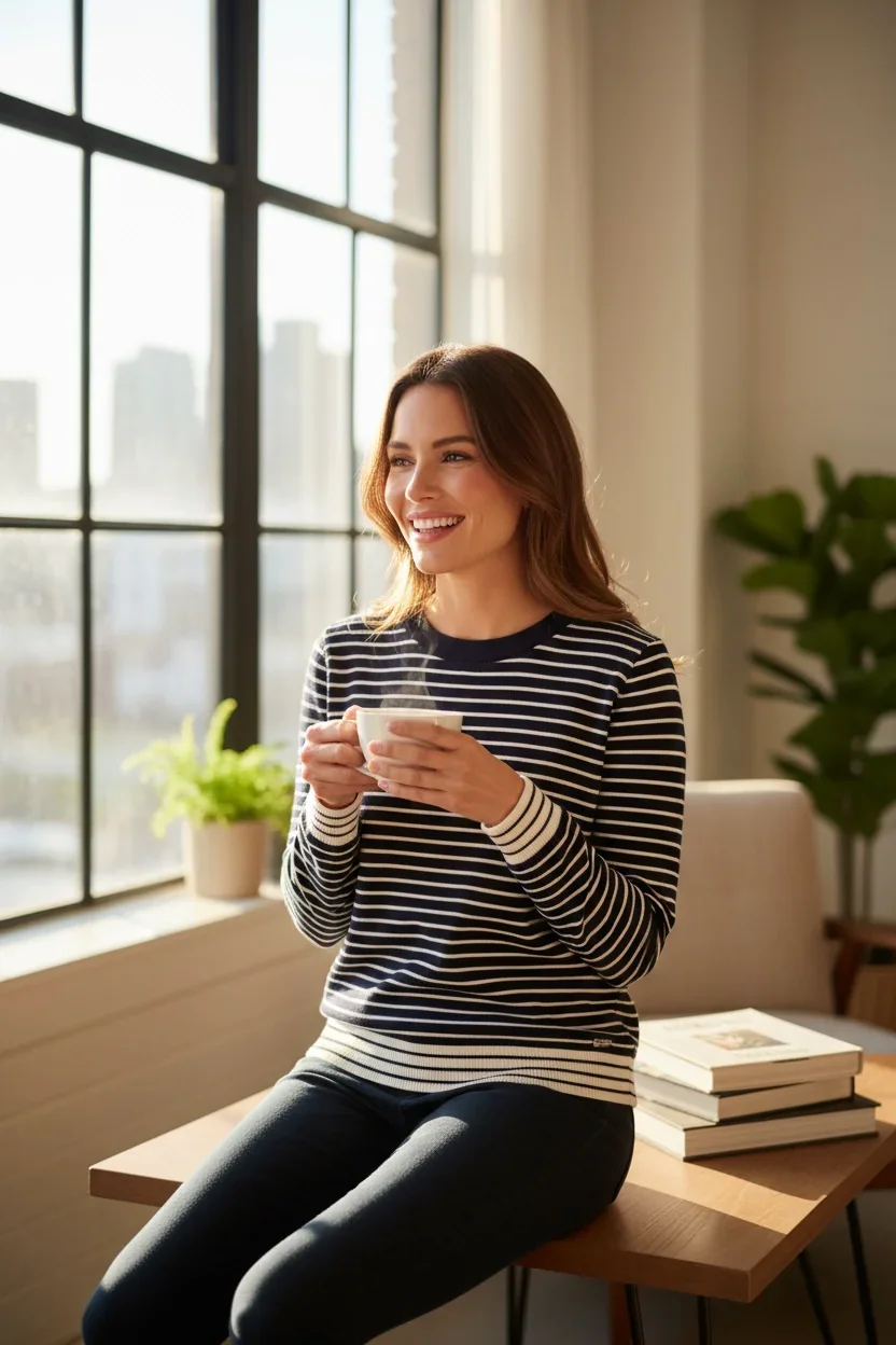 Chandail rayé col rond de laine