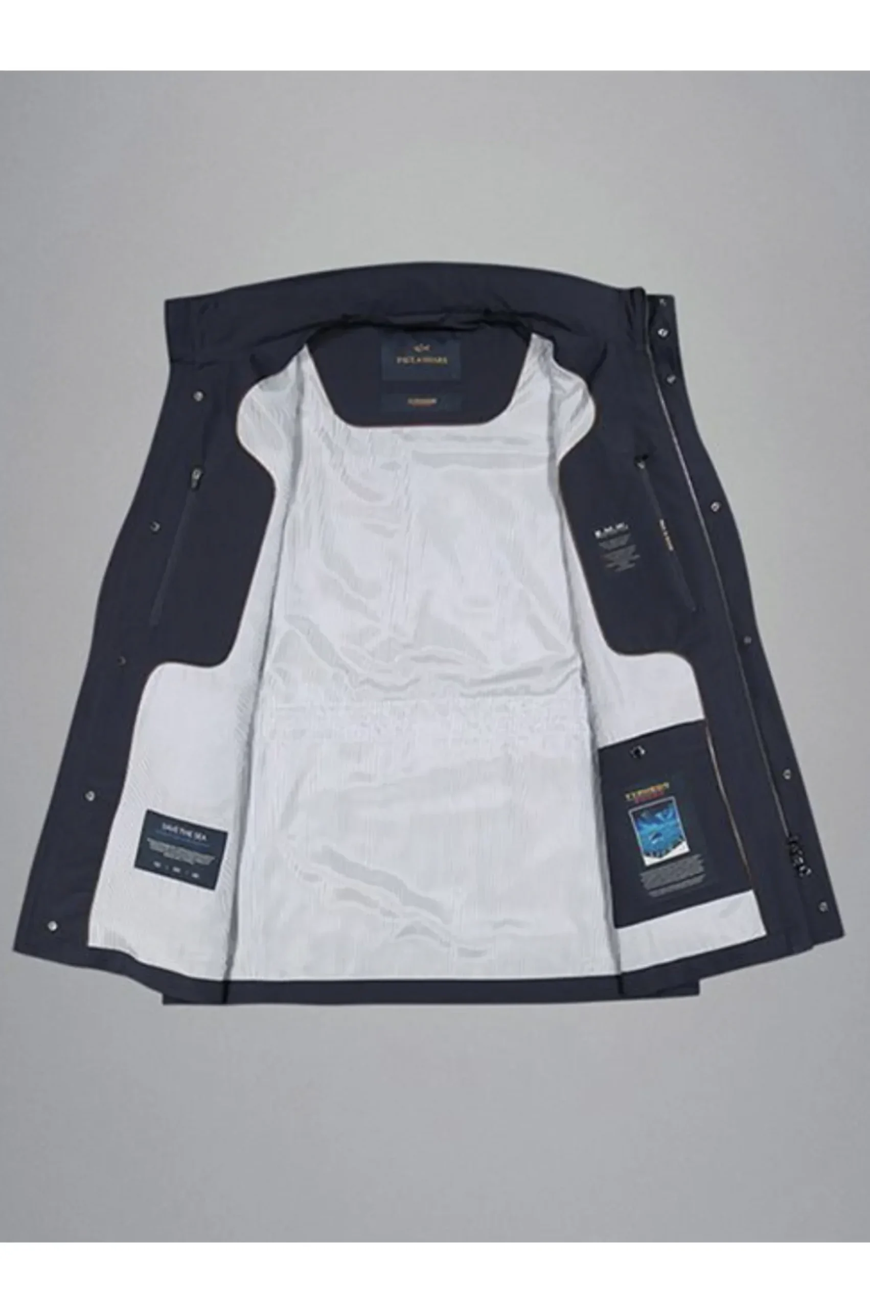 Fonctionnel et raffiné, ce manteau est conçu pour les rendez-vous urbains et les moments de détente en plein air. Le modèle est réalisé en Typhoon Re-4X4 Stretch, un tissu performant et flexible dans quatre directions pour suivre naturellement les mouvements. Riche en détails fonctionnels et fini avec une élégante doublure en satin, il présente une poche intérieure pour smartphone avec la technologie E.M.W. Protection qui bloque les ondes électromagnétiques. Le crochet à l’arrière du col, typique des vestes de bateau, est conçu pour suspendre facilement le vêtement.