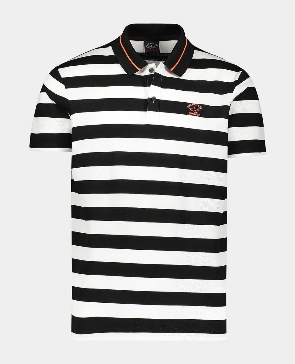 Paul & Shark – Polo rayé manches courtes coton avec bordure fluo