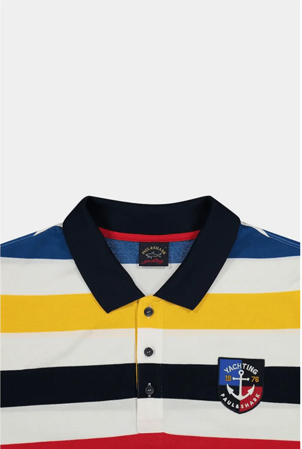 Paul & Shark – Polo rayé manches courtes de coton avec badge d’ancre