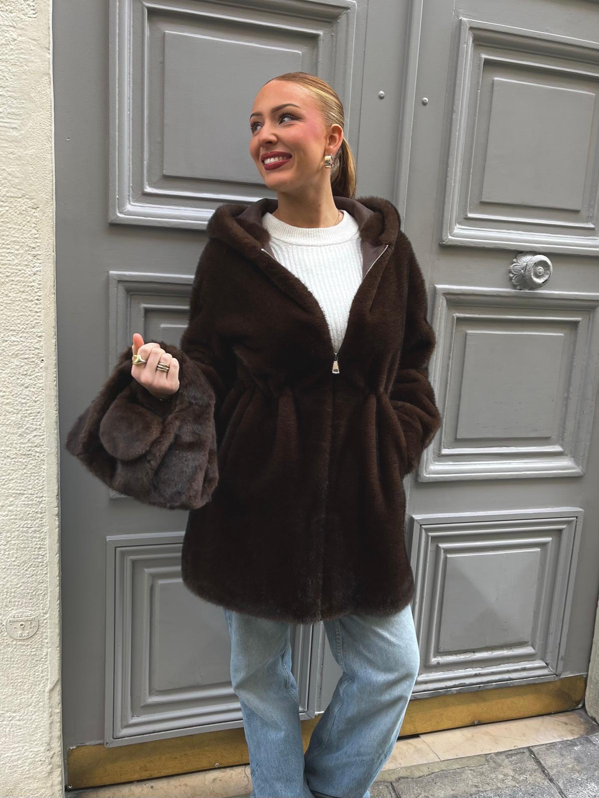 Petit sac en fourrure choco, apportant une touche chic a vos tenues.