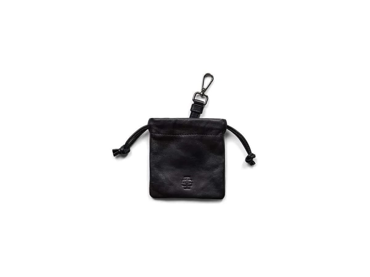 Petite pochette munie d’une fermeture par lien à nouer, ornée d’un logo embossé pour une touche élégante.