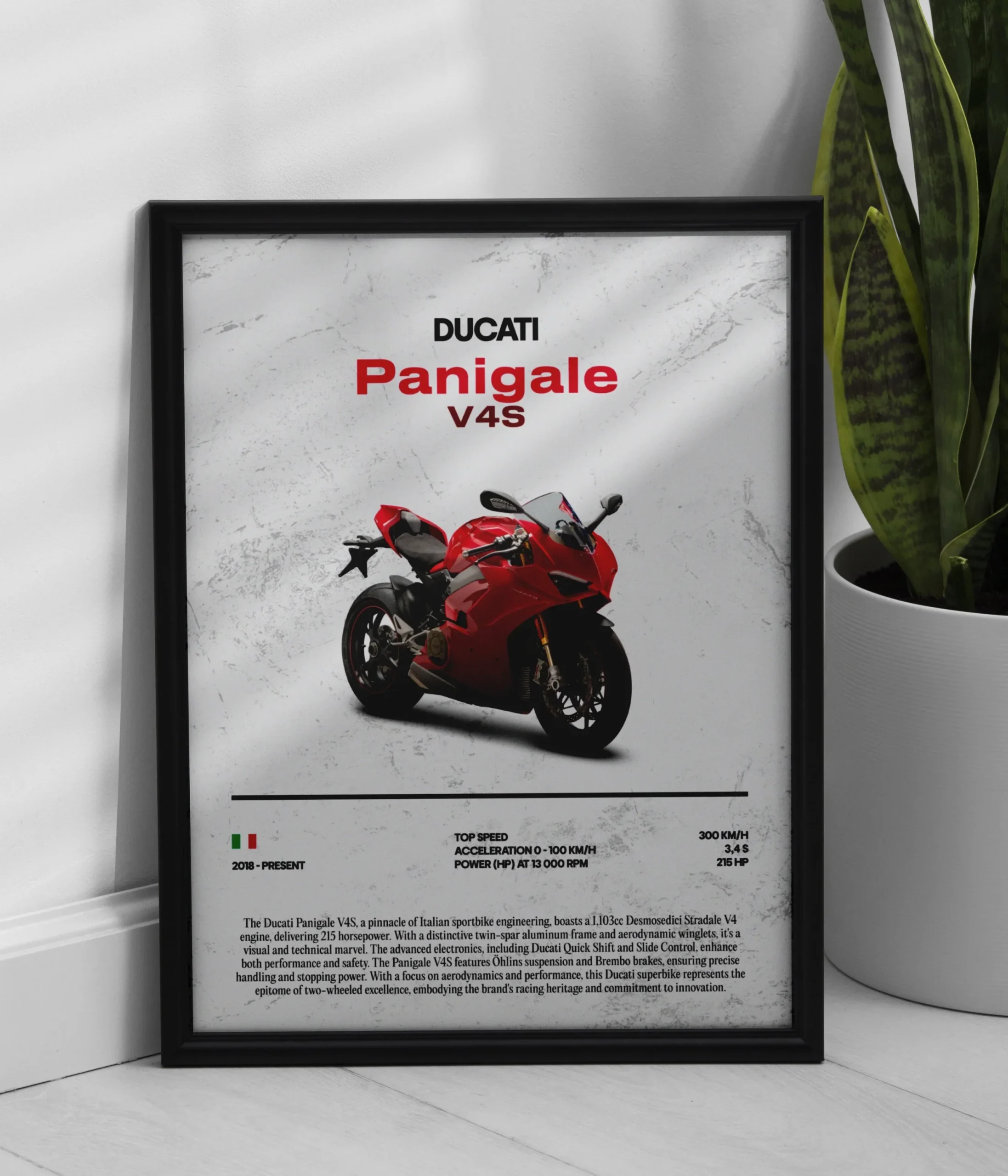 Affirmez votre passion pour l’excellence italienne avec le Poster Ducati Panigale V4S. Un design puissant et raffiné pour les amateurs de motos de prestige. Illustration premium : représentation détaillée de la légendaire Ducati Panigale V4S, icône de la vitesse et du design italien. Données techniques impressionnantes : Vitesse maximale : 300 km/h 0-100 km/h : […]