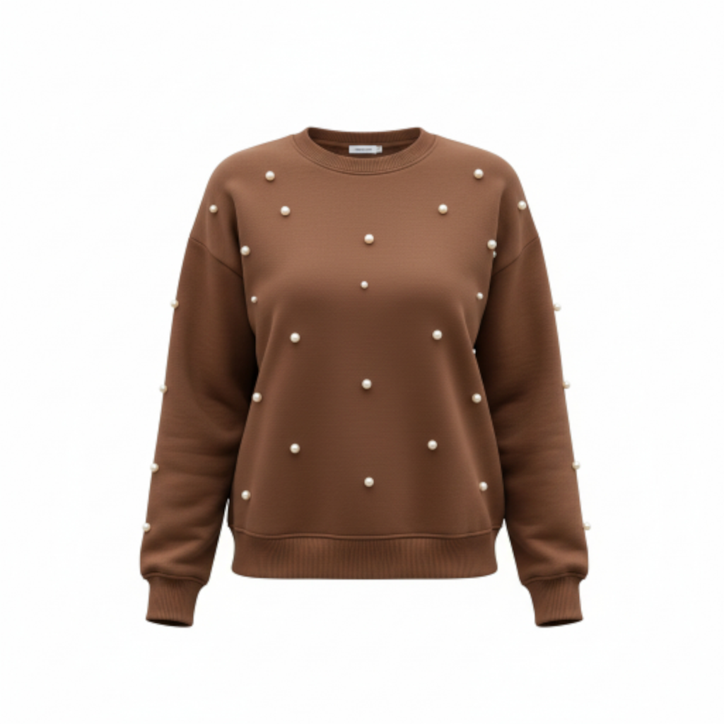 Alliez confort et élégance avec ce pull choco sublimé par de fines perles argentées.